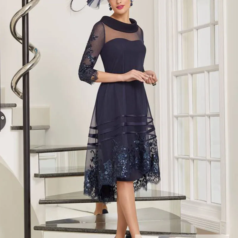 Темно-синее Сетчатое платье на заказ, платье для матери невесты, свадебное платье для матери, платье с вырезом-сеткой со складками