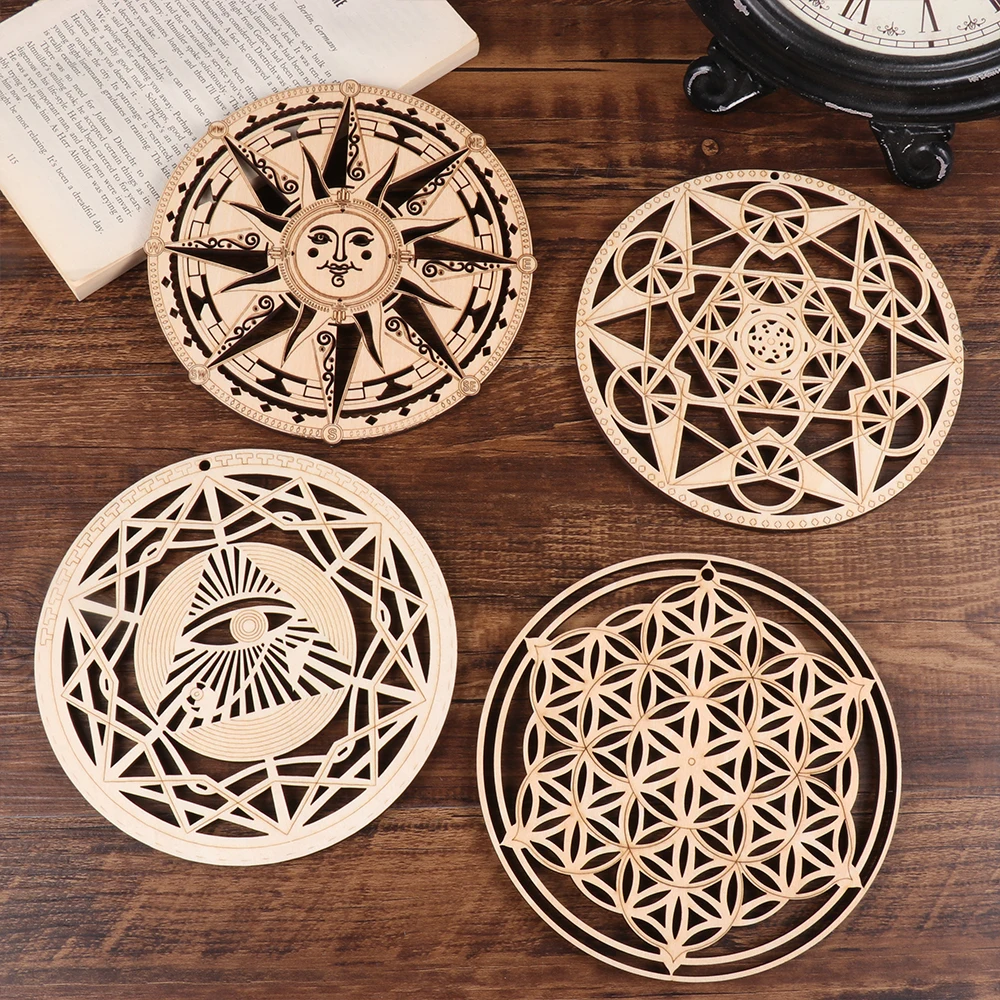 Деревянная настенная живопись, Сакральная геометрия, настенная живопись, деревянная вывеска, Хрустальная сетка, резная чакра, исцеление, украшение для дома