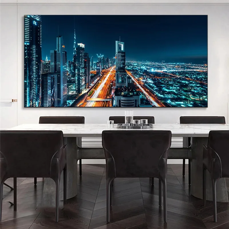 Постеры с изображением шейха зайца, дороги, ночного освещения, сцены, плакаты, принты, Ближний Восток, улица Дубая, Картина на холсте, настенное искусство, картина для гостиной