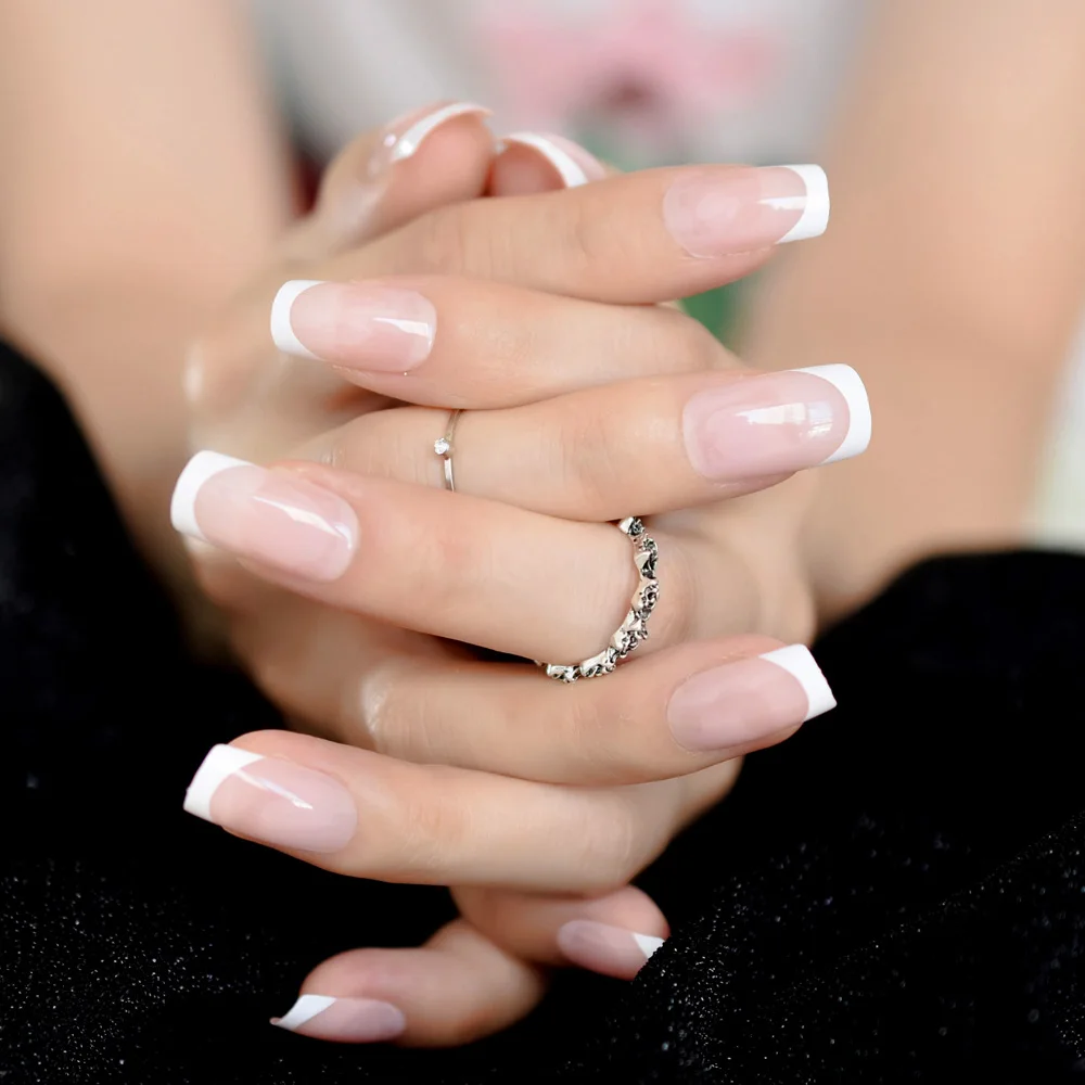 Длинные Squoval розовые и белые гелевые наконечники для украшения искусственных ногтей Искусственные ногти на ногтях многоразовые ногти
