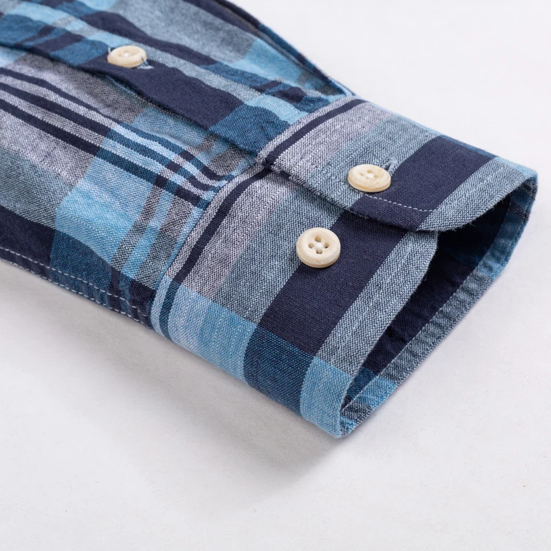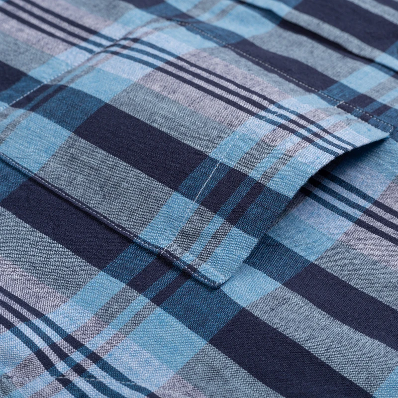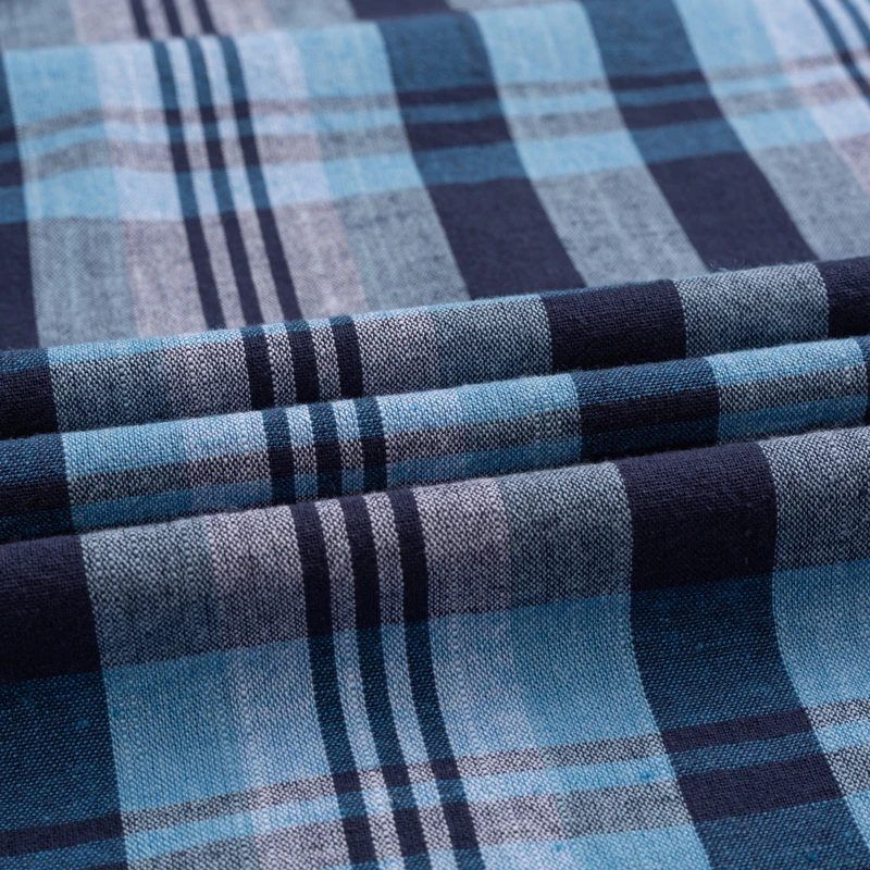 Мужская рубашка в клеткув полоску, Повседневная рубашка из хлопка и льна, с одним карманом, на пуговицах, удобная мягкая рубашка стандартного кроя с длинными рукавами, в клетку