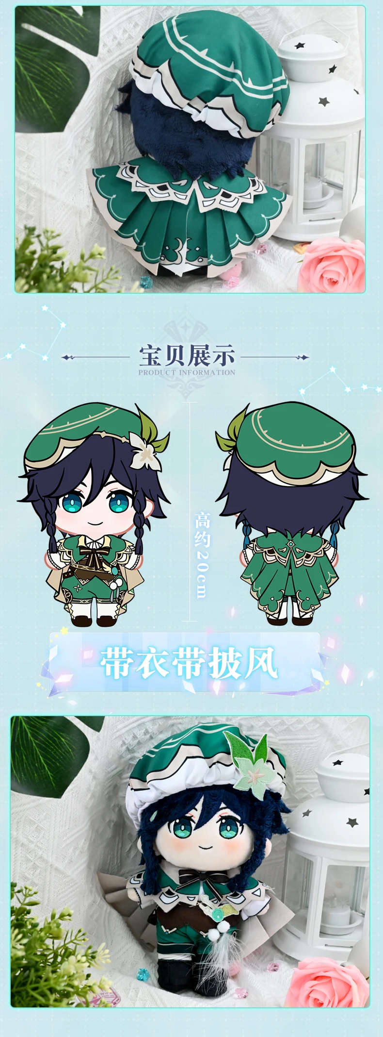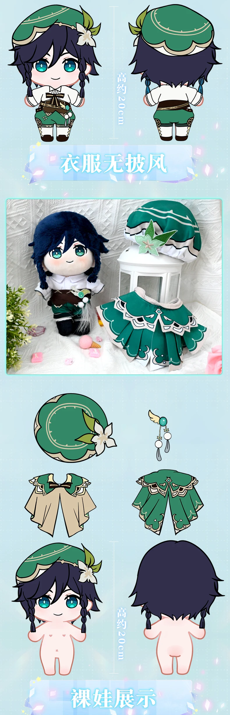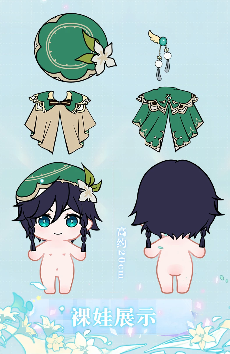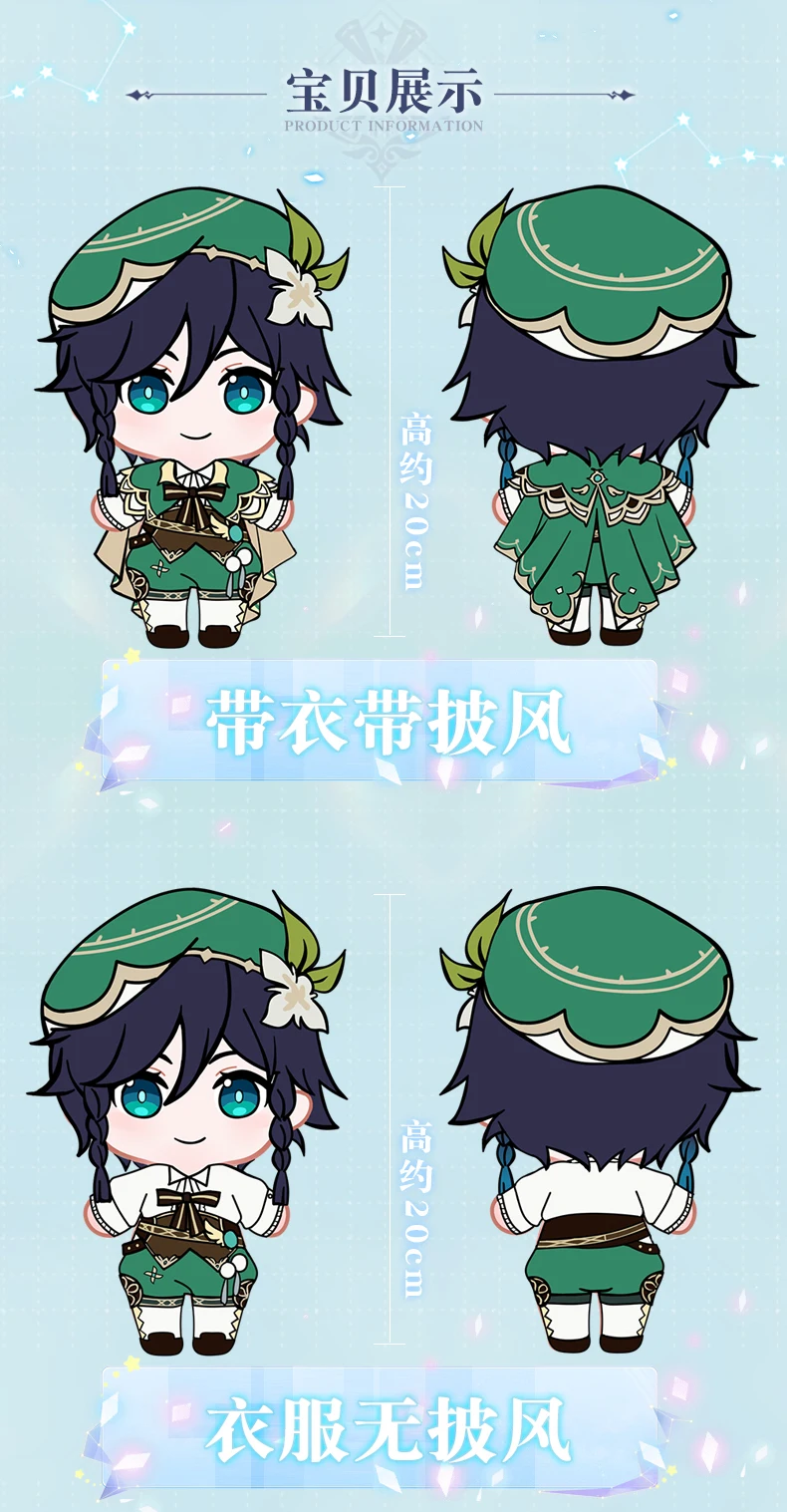 Игра Genshin Impact Barbatos 20 см, плюшевая кукла с одеждой, Venti, косплей, игрушка, тело, мягкий, милый, косплей, Хэллоуин, подарки, аниме
