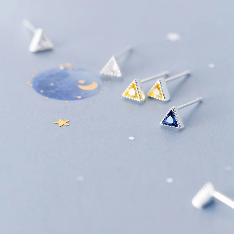 LKO Настоящее стерлингового серебра 925 пробы цветной кристалл мини треугольник милые серьги-гвоздики для женщин ювелирные изделия Lovel девушки уха шпильки украшения