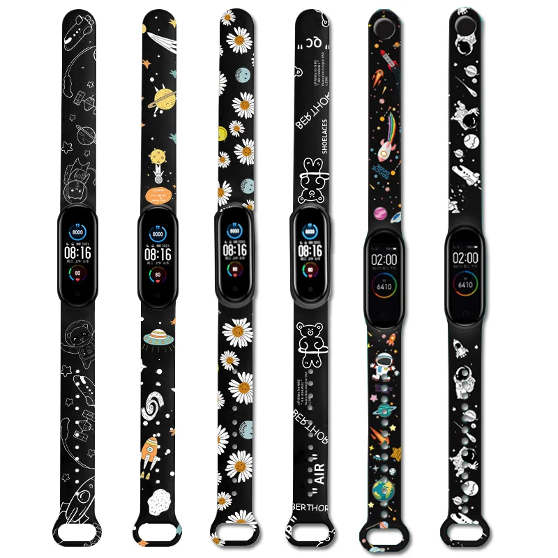Для Mi band 3 4 5 6 цветной мягкий силиконовый браслет аксессуары inteligente браслет красивые цветы mi band 3 4 replacem