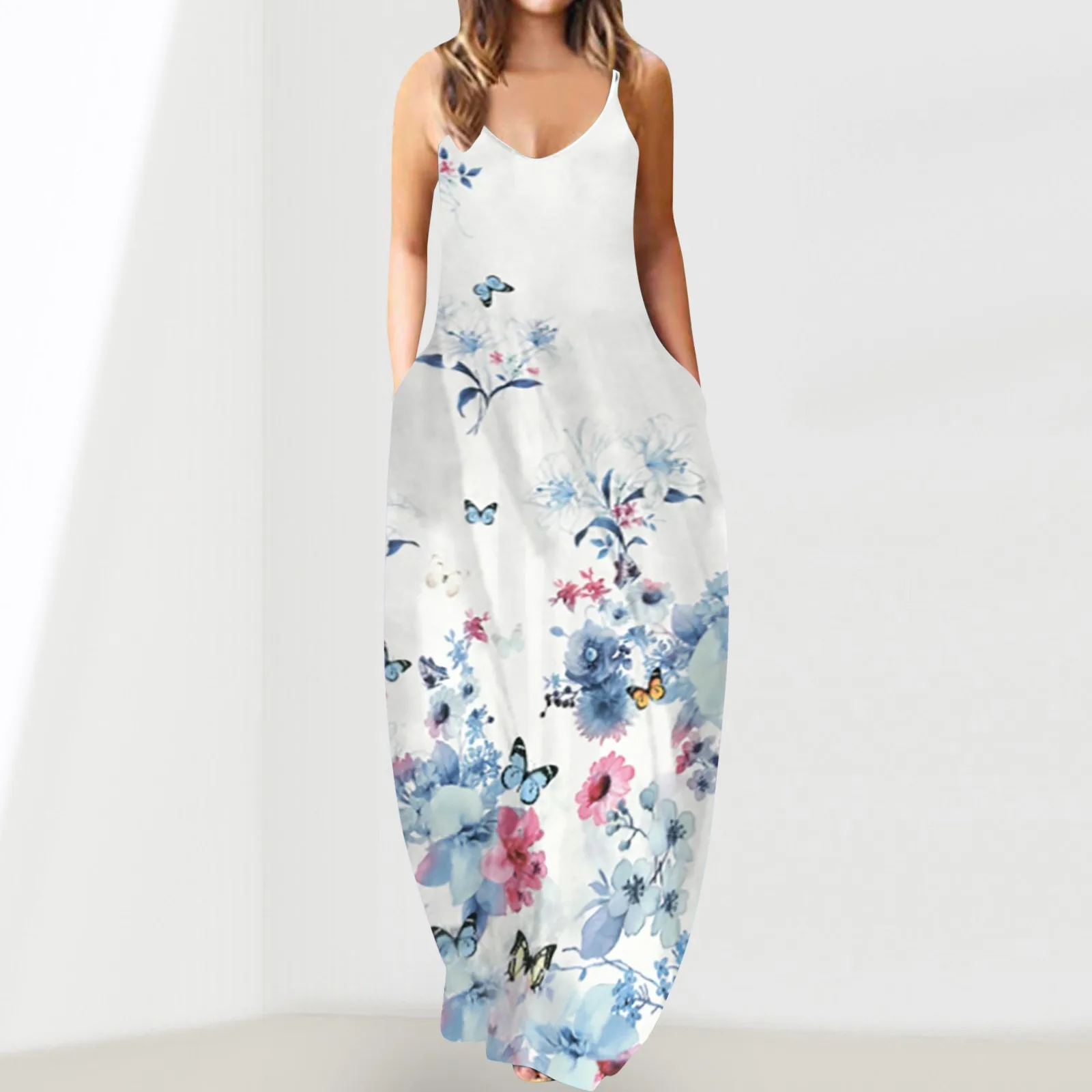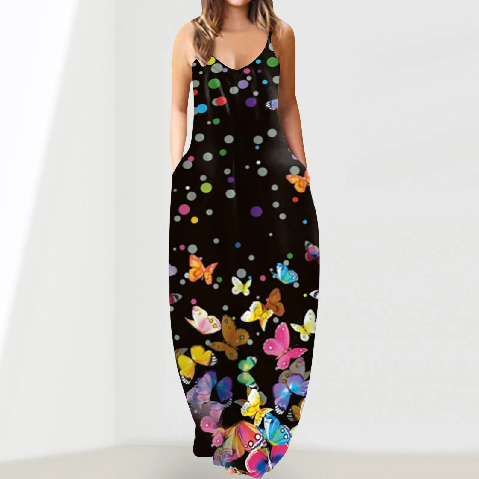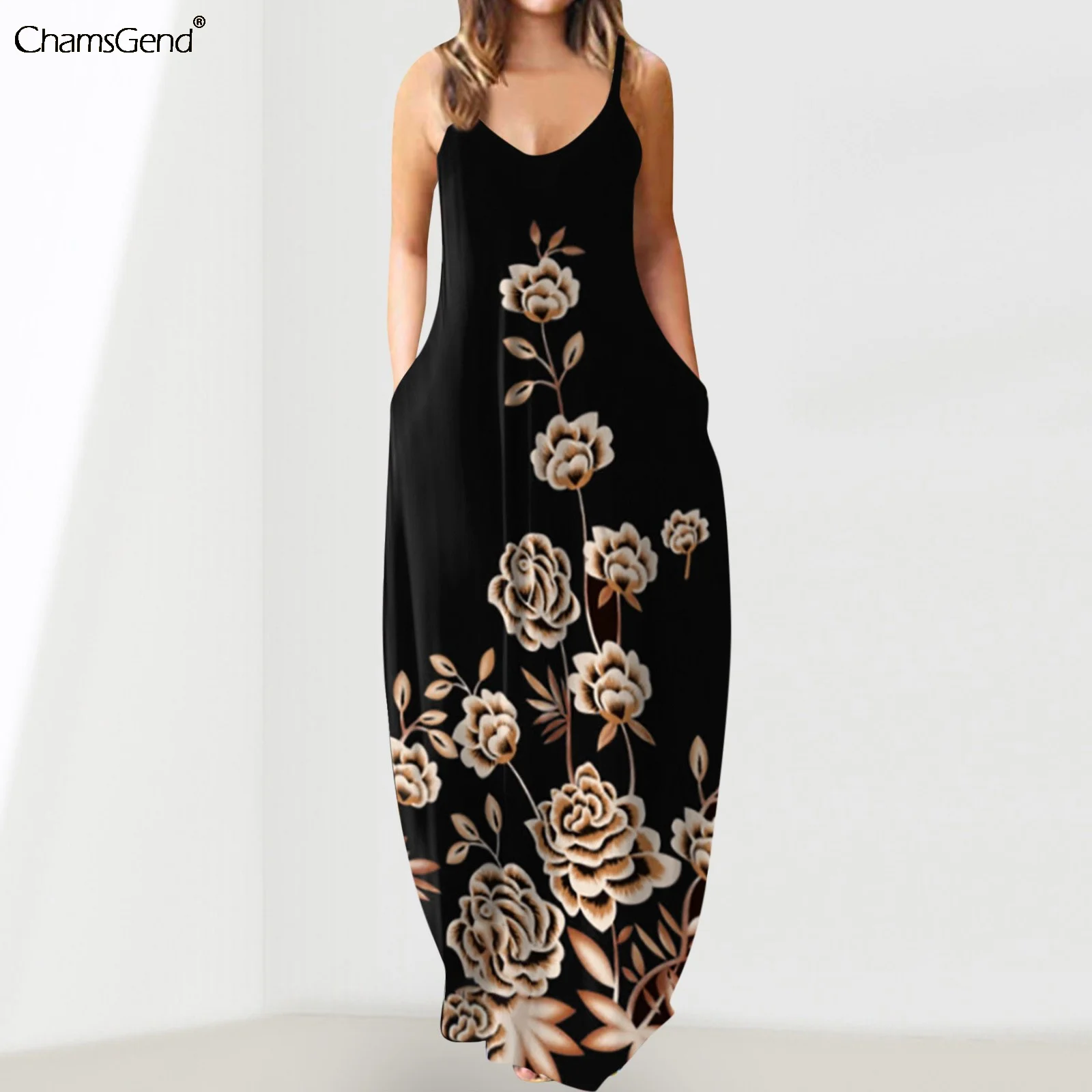 Женское платье макси с принтом черных роз, Элегантное повседневное богемное платье без рукавов, хлопковое платье, лето 2021