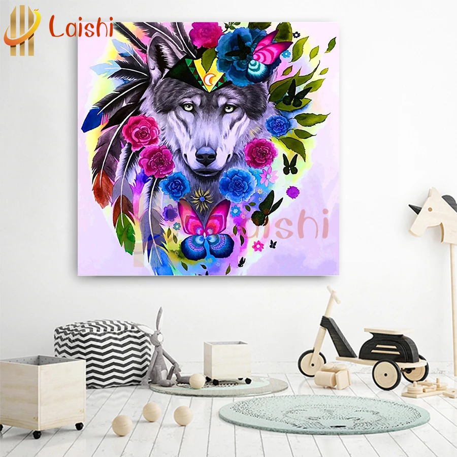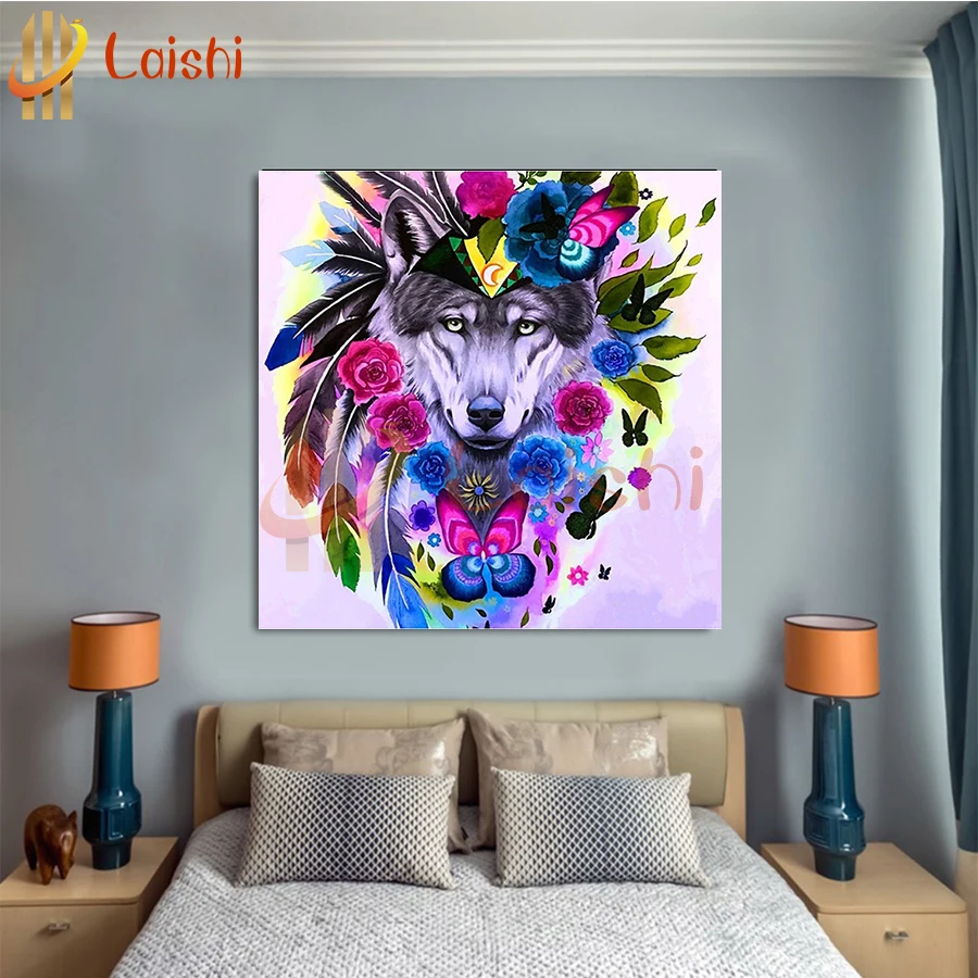 Алмазная живопись 5D сделай сам с индейскими перьями, тотем, волком, цветами, алмазная вышивка крестиком, полноразмерное украшение для дома