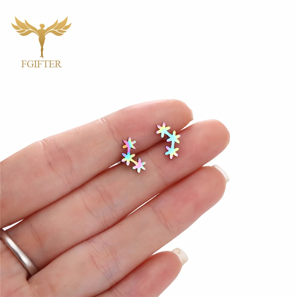 Корейские простые женские серьги-гвоздики, стальной цвет, радуга, ж...