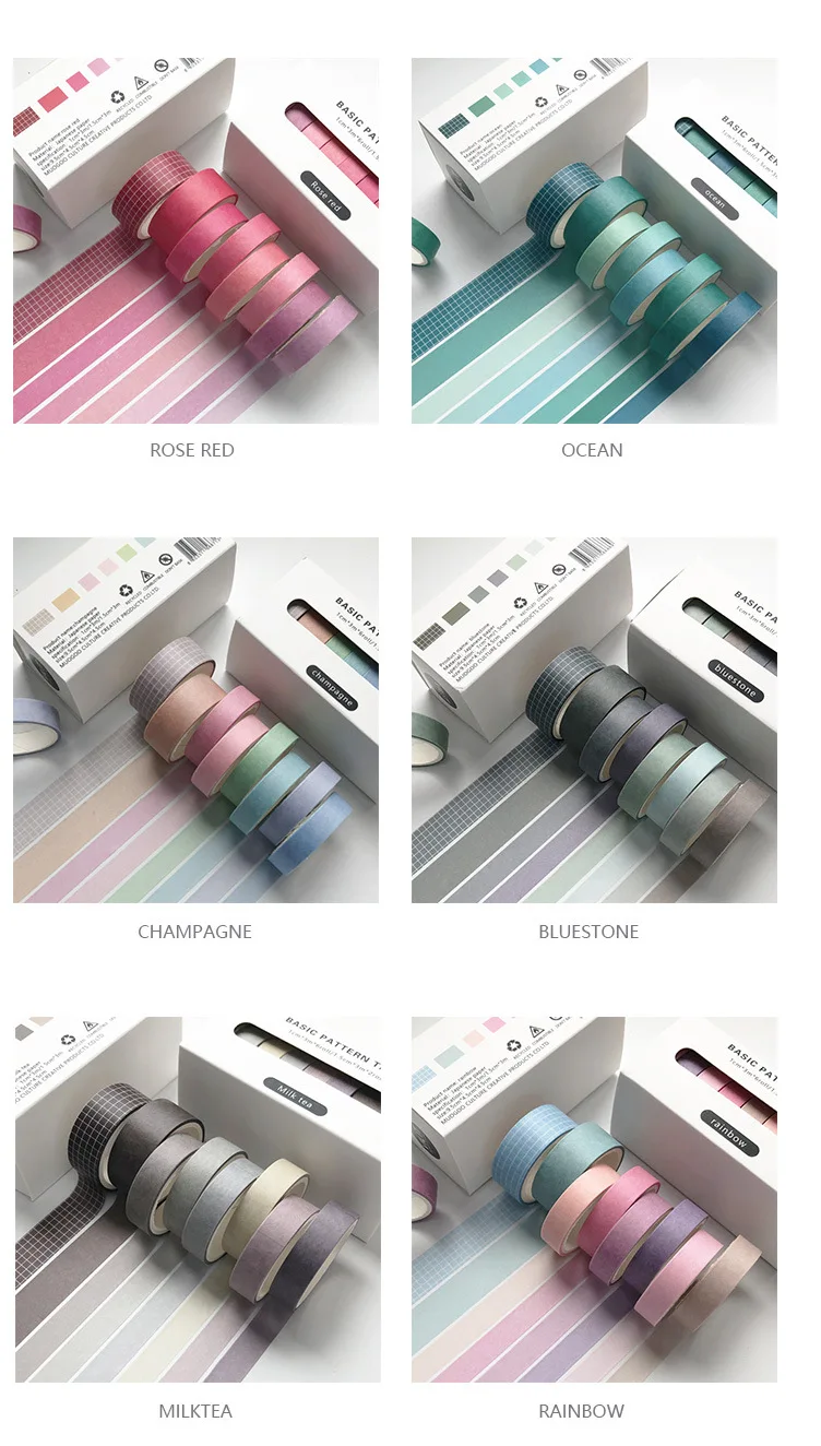 Клейкая лента, 8 шт.компл., в стиле ретро, однотонная, базовая, лента для декорации Washi шт.