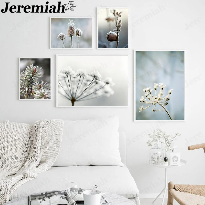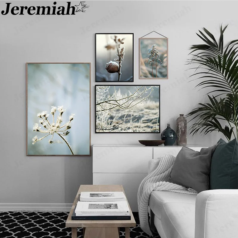 Минималистичная Картина на холсте в скандинавском стиле с изображением растений, зимний природный ландшафт, снежинка, плакат, современное настенное искусство, украшение для дома и комнаты, подарок