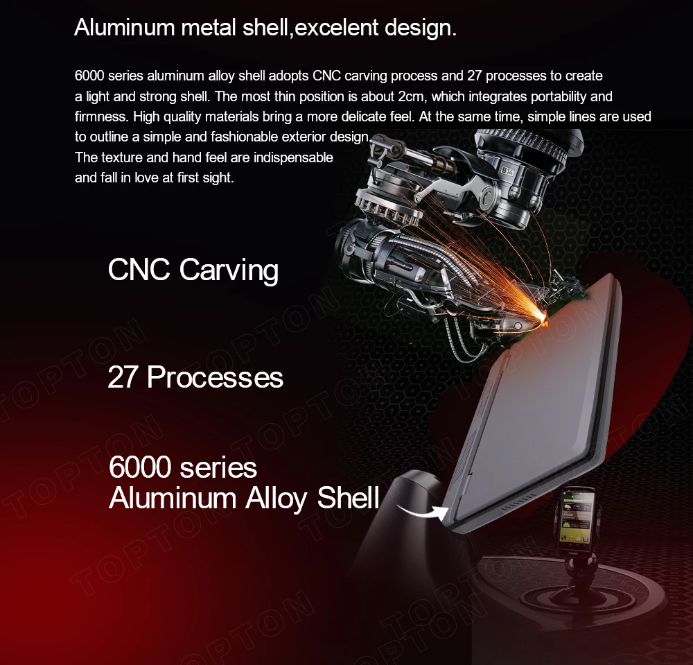 2. Корпус: корпус из алюминиевого сплава серии 6000, с помощью процесса гравировки с ЧПУ, 27 проходит процесс, чтобы создать светильник и прочный корпус 7-X133, который является портативным и прочным, когда корпус около 2 см. Все в одном, высококачественные материалы приносят более деликатный вид.
