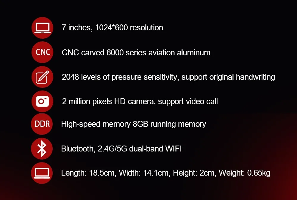 1. Сенсорный: 7-X133 экран бизнес-версии поддерживает десять точек касания и 2048-уровневый чувствительный к давлению оригинальный почерк, больше способов ввода может быть вашим электронным ноутбуком, креативным рисованием, записью, ответ на документы и заполнение форм можно сделать легко.
