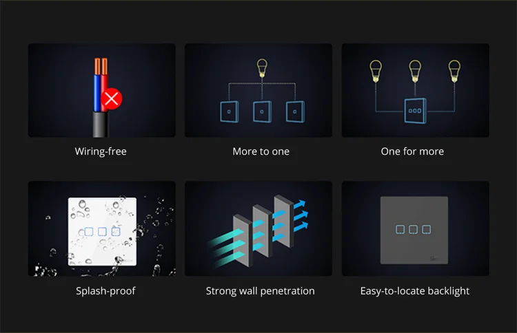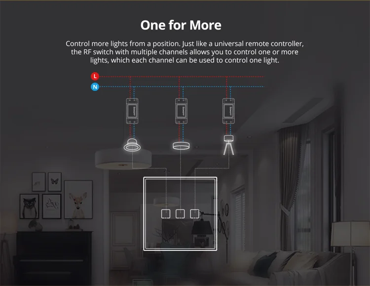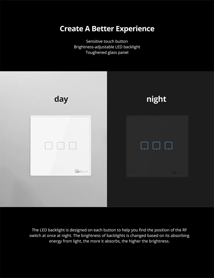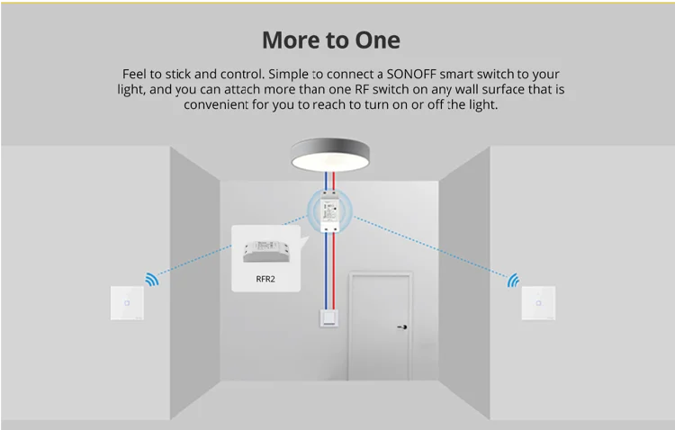 Пульт дистанционного управления с 1/2/3-gang работает как и другие обычные переключатели на светильник, но позволяет управлять подключением светильник s с расстояния, и не требуется провод, просто приклейте его к использованию. Несколько банд позволяют реализовывать два решения дистанционного управления, один пульт дистанционного управления SONOFF для управления несколькими светильник с управлением и несколько пультов дистанционного управления SONOFF для управления светильник. Кроме того, пульт дистанционного управления может использоваться для подключения к настенному переключателю SONOFF T1/T2/T3 для достижения двустороннего управления. Он также используется для RFR2, RFR3, 4CHPROR3 и SlampherR2, что обеспечивает вам еще один способ управления, за исключением дистанционного управления приложением и голосового управления. Задний светильник разработан на сенсорной кнопке, чтобы дать вам четкое местоположение, чтобы контролировать светильник в ночное время. Поглощающая энергия от светильник определяет яркость задний светильник, чем больше энергии он поглощает, тем выше его яркость. Три способа использования могут быть выбраны из ручки, винта и столешницы.