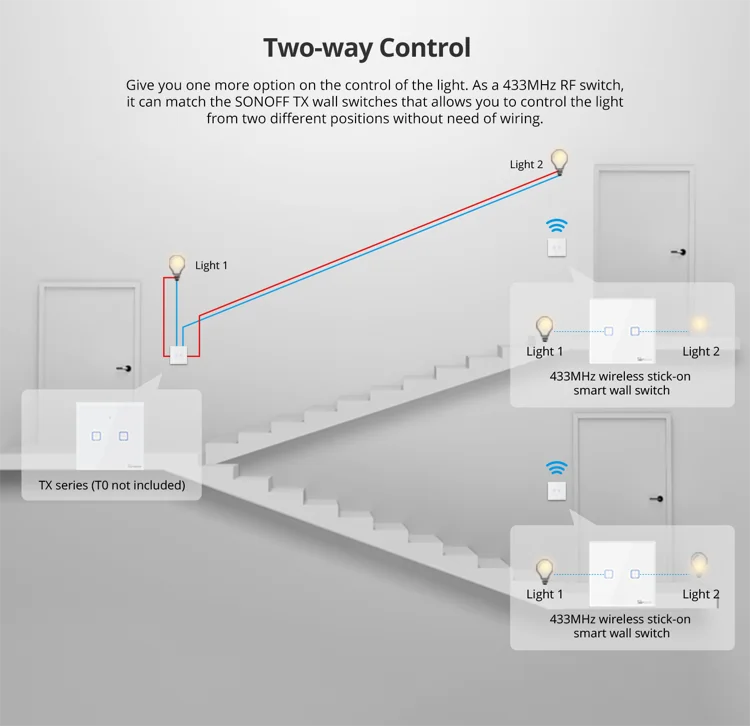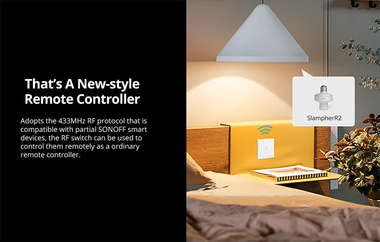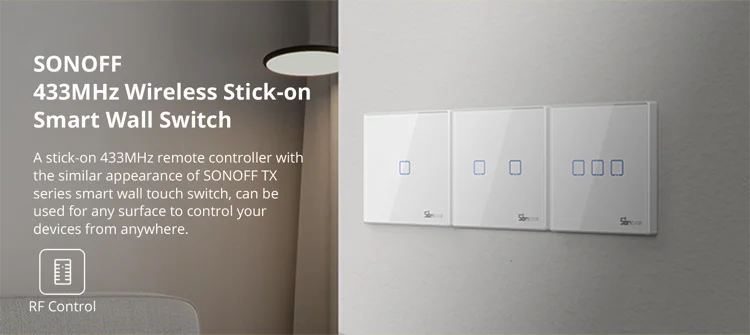 Является ли беспроводной настенный выключатель 433 МГц расширенным новым прибытием бестселлеров SONOFF серии TX Wi-Fi? Нет. Он продолжает аналогичный вид с серией TX, чтобы сохранить ваш домашний стиль современным и художественным, и на самом деле является дистанционным контроллером 433 МГц.