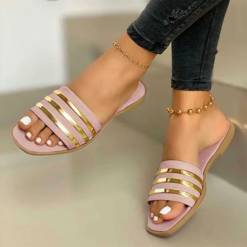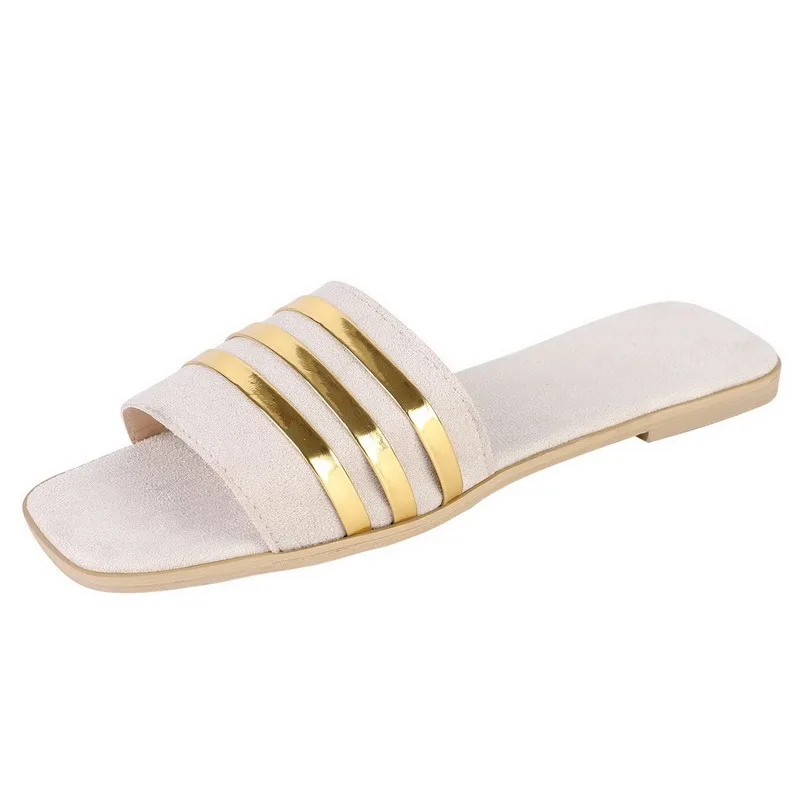 Женские пляжные шлепанцы, золотистые шлепанцы на плоской подошве, без застежки, повседневные сандалии, лето 2022