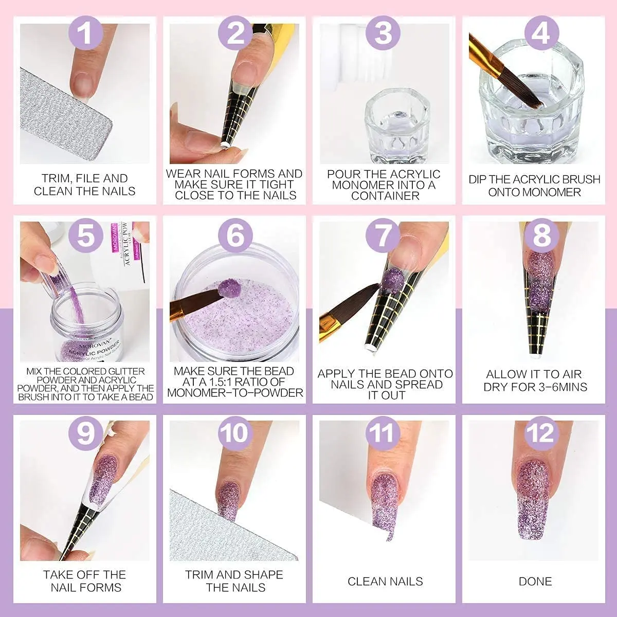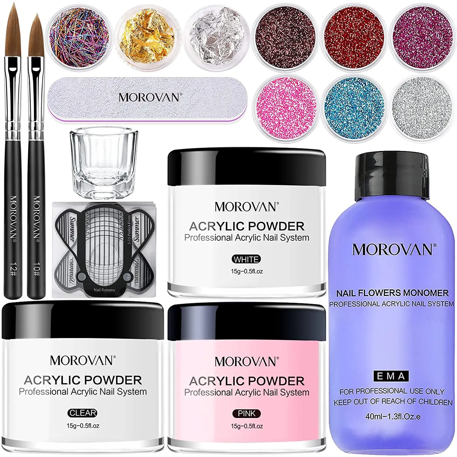 Акриловая пудра с блестками и жидкость в комплекте с кисточкой для ногтей пилки для ногтей для начинающих набор для наращивания акриловых ногтей украшение