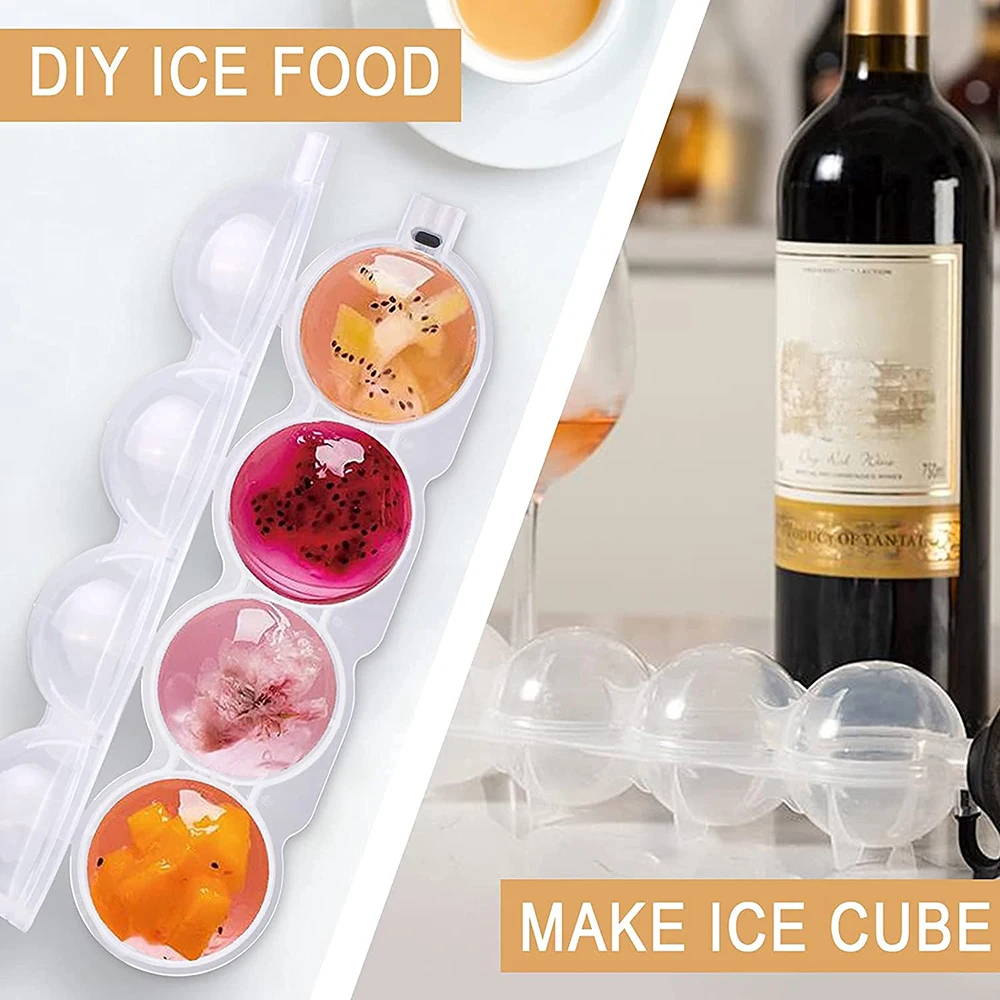 4-полостная форма для изготовления кубиков льда для виски, Сферическая форма сделай сам для изготовления мороженого, Пластиковая форма для льда, инструмент для виски, кухонное приспособление