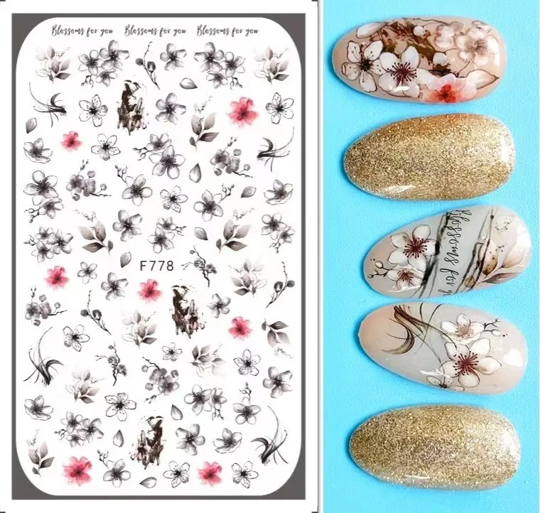 Самоклеящаяся наклейка для ногтей, цветы, дизайнерские наклейки, украшения для ногтей, цветущий градиент, украшения для ногтей, 1 шт.