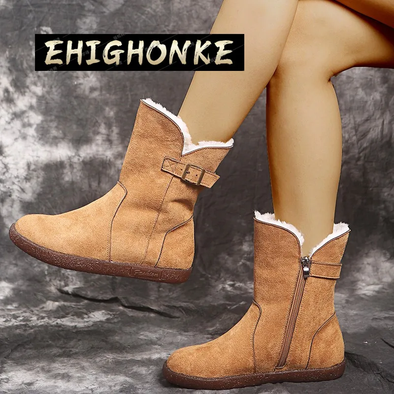 Новинка 2022, классические модные зимние женские ботинки с круглым носком, Прошитые женские снегоступы с круглым носком, на каблуке-шпильке, из флока, резиновые кроссовки на платформе