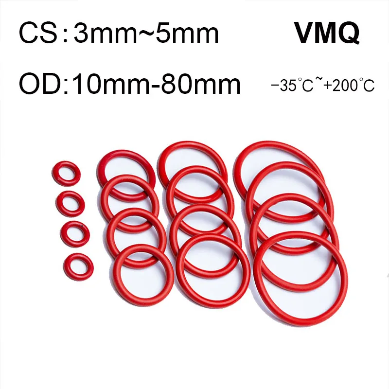 10 шт. CS 3 мм3,5 мм4 мм5 мм, красное Силиконовое кольцо VMQ, уплотнительные кольца из пищевой резины, внешний диаметр 10 мм-80 мм