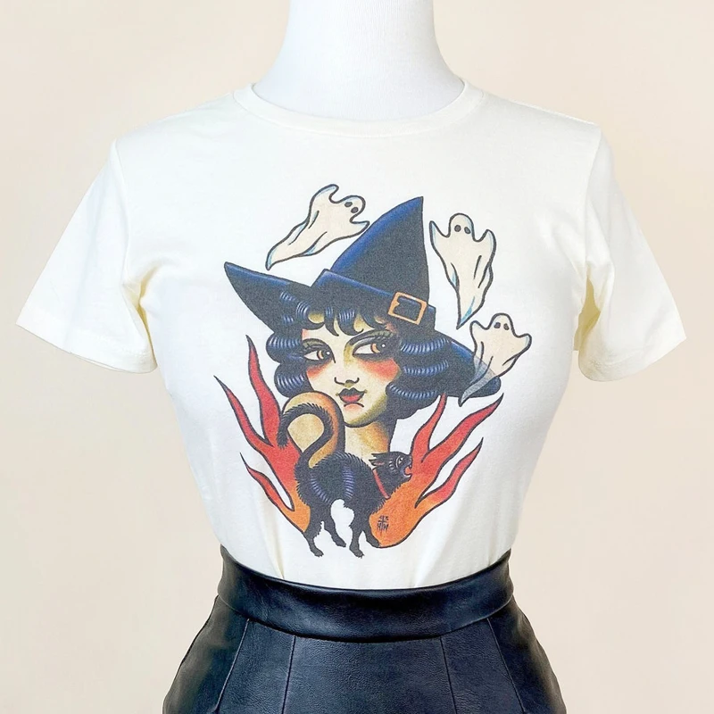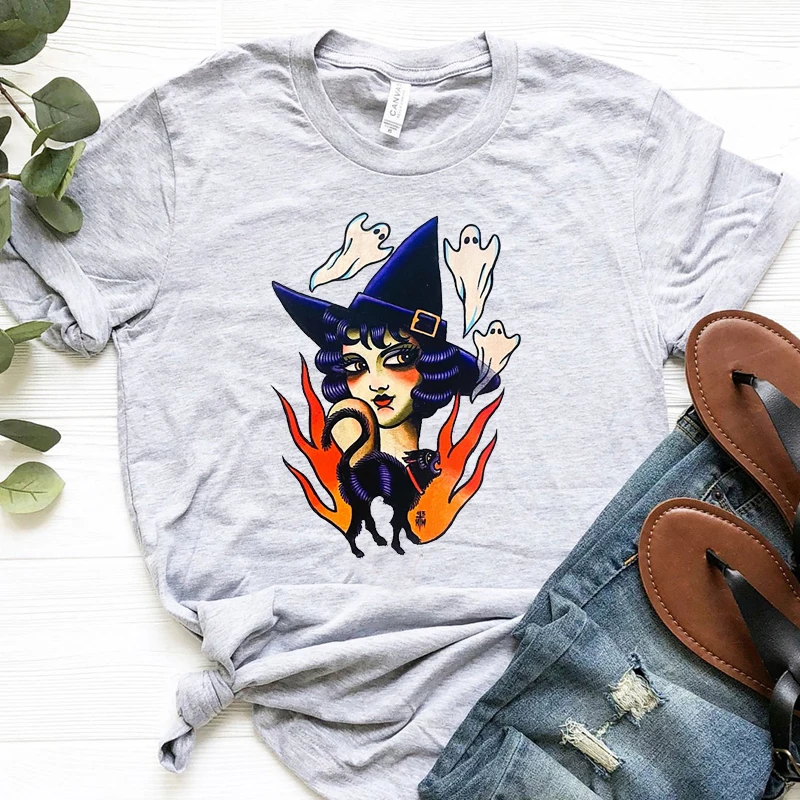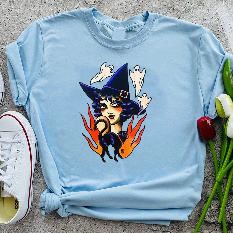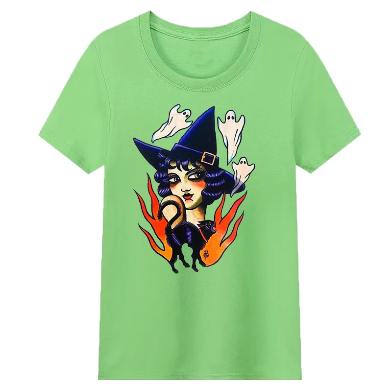 Футболка женская с принтом ведьмы и призрака, 100% хлопок