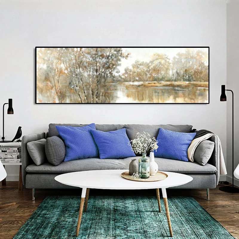 Абстрактный пейзаж, постеры и принты, настенная живопись, деревья и озеро, картины для гостиной без рамок