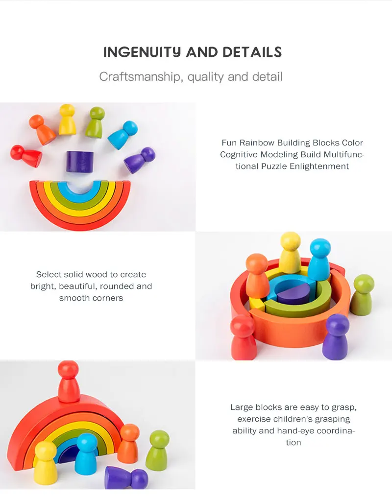 Радужные строительные блоки, комбинация злодей, деревянные детские ...
