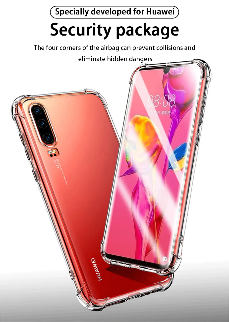 Прозрачный чехол с подушкой безопасности для Huawei P40 P30 P20 Pro Plus Lite, чехол с защитой от падения, прозрачный чехол для телефона Huawei Mate 20 30 Pro, чехлы
