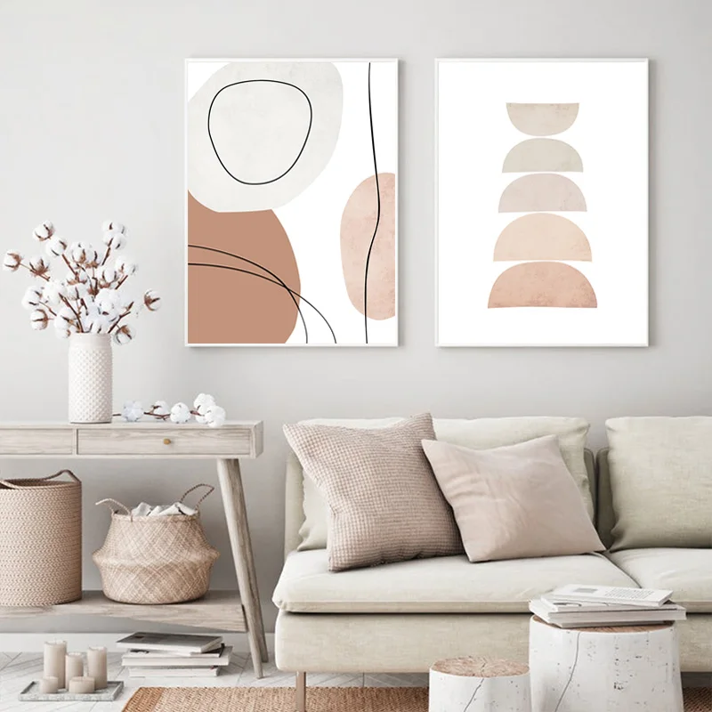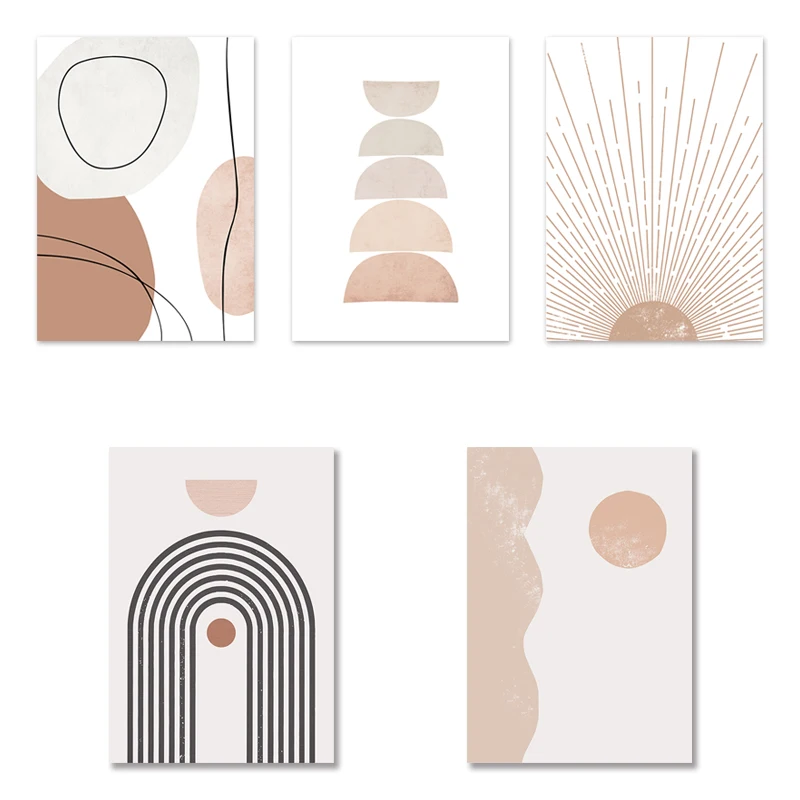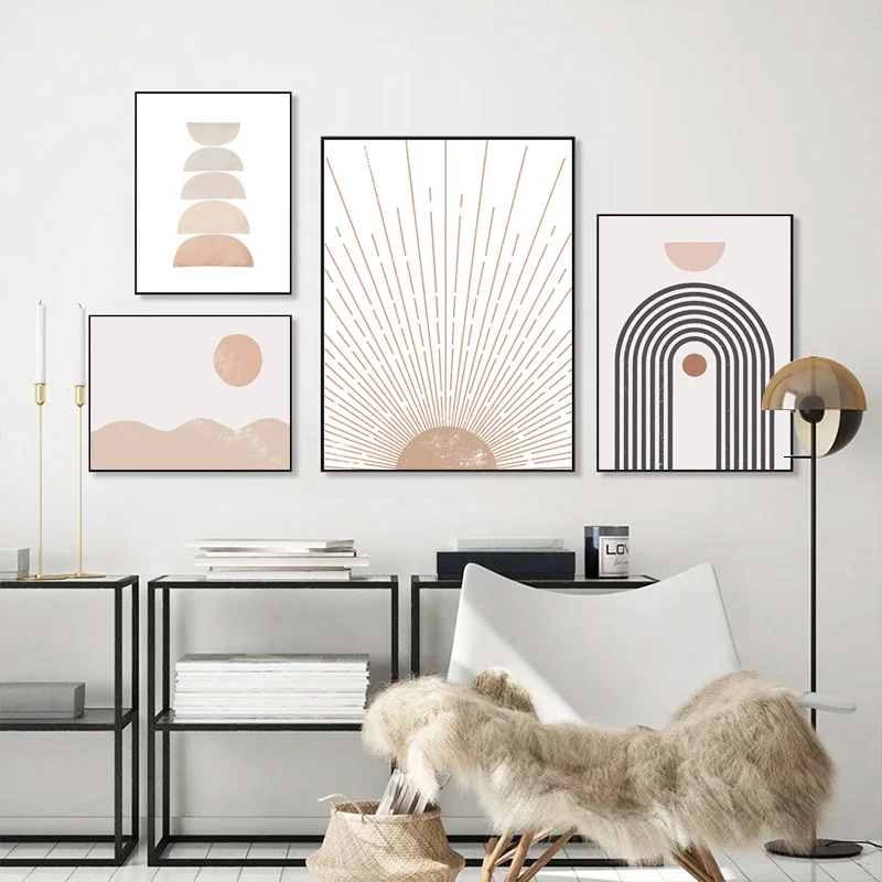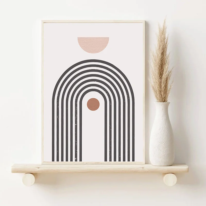 Абстрактная Геометрическая поднимающаяся Радуга бежевая Картина на холсте в стиле бохо настенные художественные картины плакаты с принтом для интерьера гостиной домашний декор