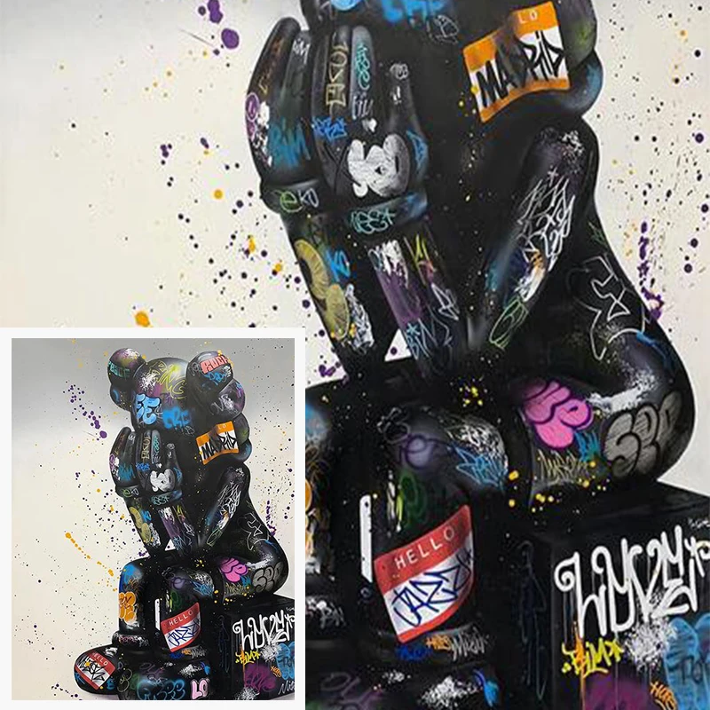 Художественная картина в стиле поп-улицы, граффити, мышление, рисун...