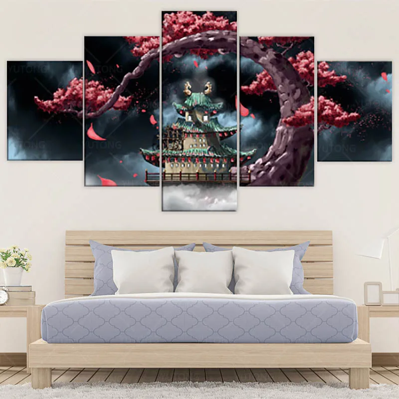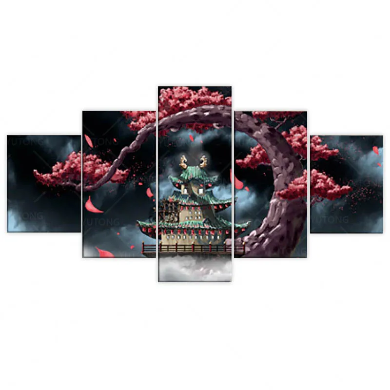 Мы предоставляем индивидуальную печать. Мы можем помочь вам разрезать изображение, чтобы соответствовать 5 панелям холстины стены искусства.