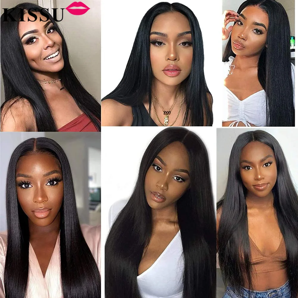 Парик 30 дюймов с прямыми кружевами спереди, предварительно выщипанные кости, прямые человеческие волосы, T-образный парик, бразильские кружевные передние натуральные волосы, парики для женщин