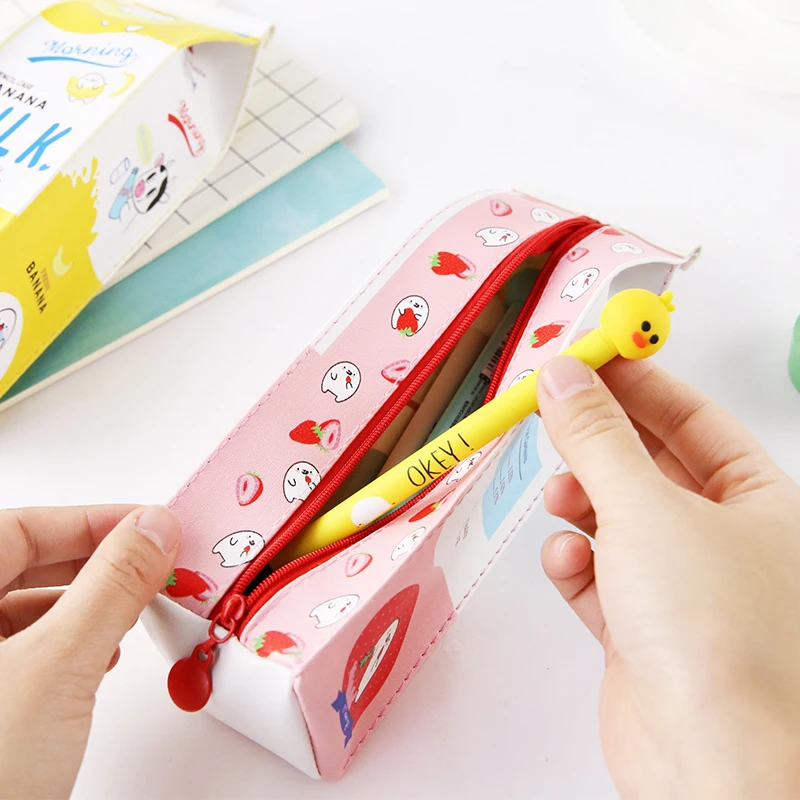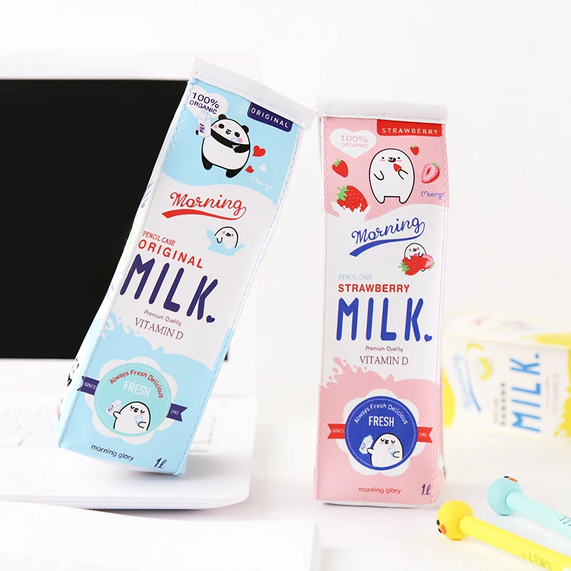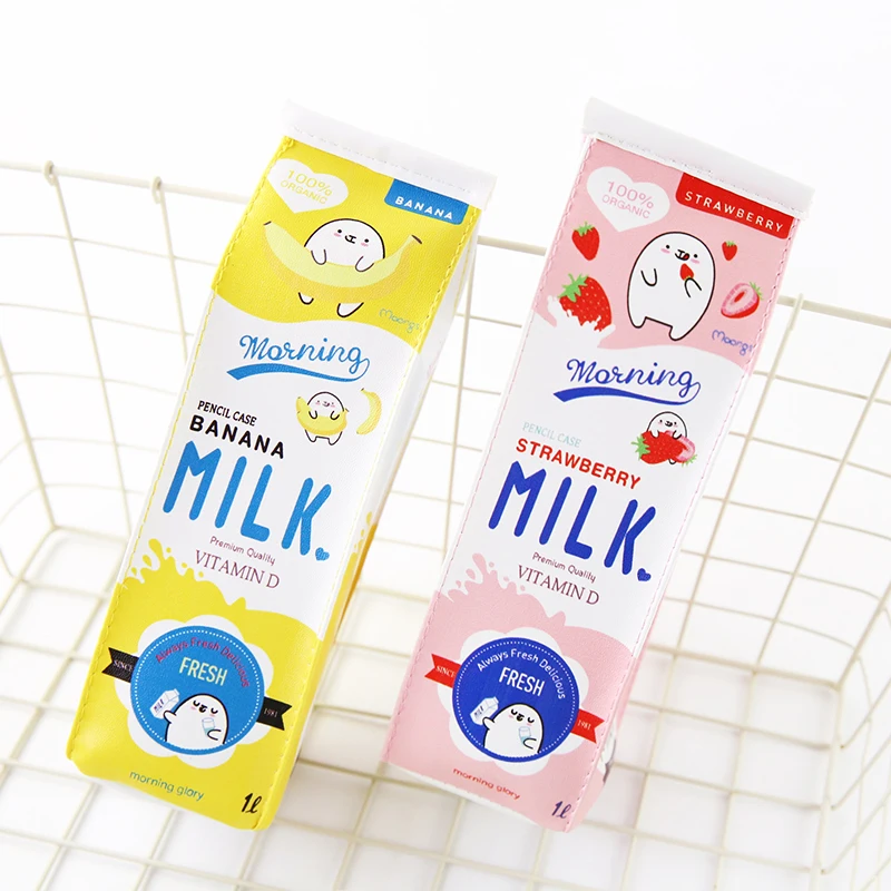 Опишите:Чехол-карандаш из искусственной кожи с рисунком из мультфильма Morning Milk, модный футляр для хранения канцелярских принадлежностей, сумка-Органайзер для школы и офиса, Escolar.