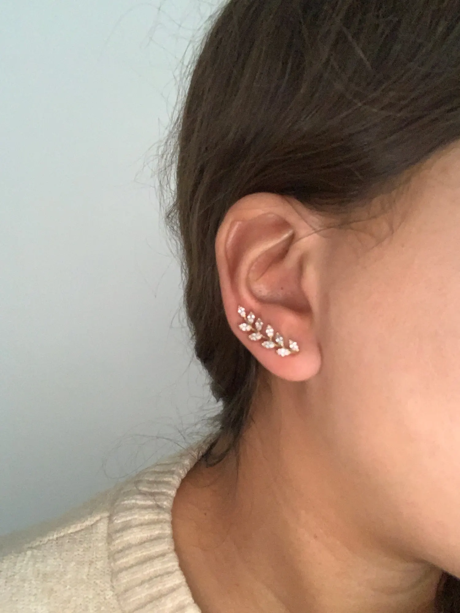 Серьги-клипсы женские в виде листьев с фианитом, 2 шт.компл.