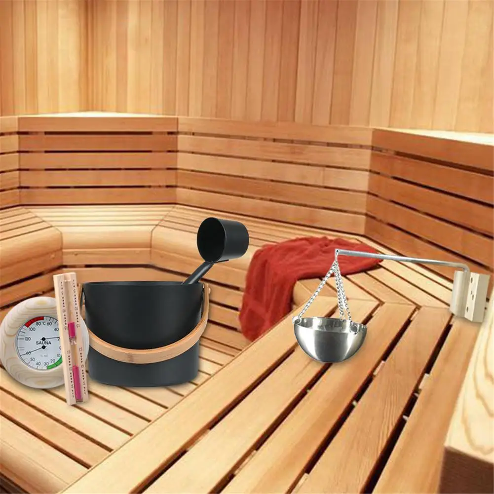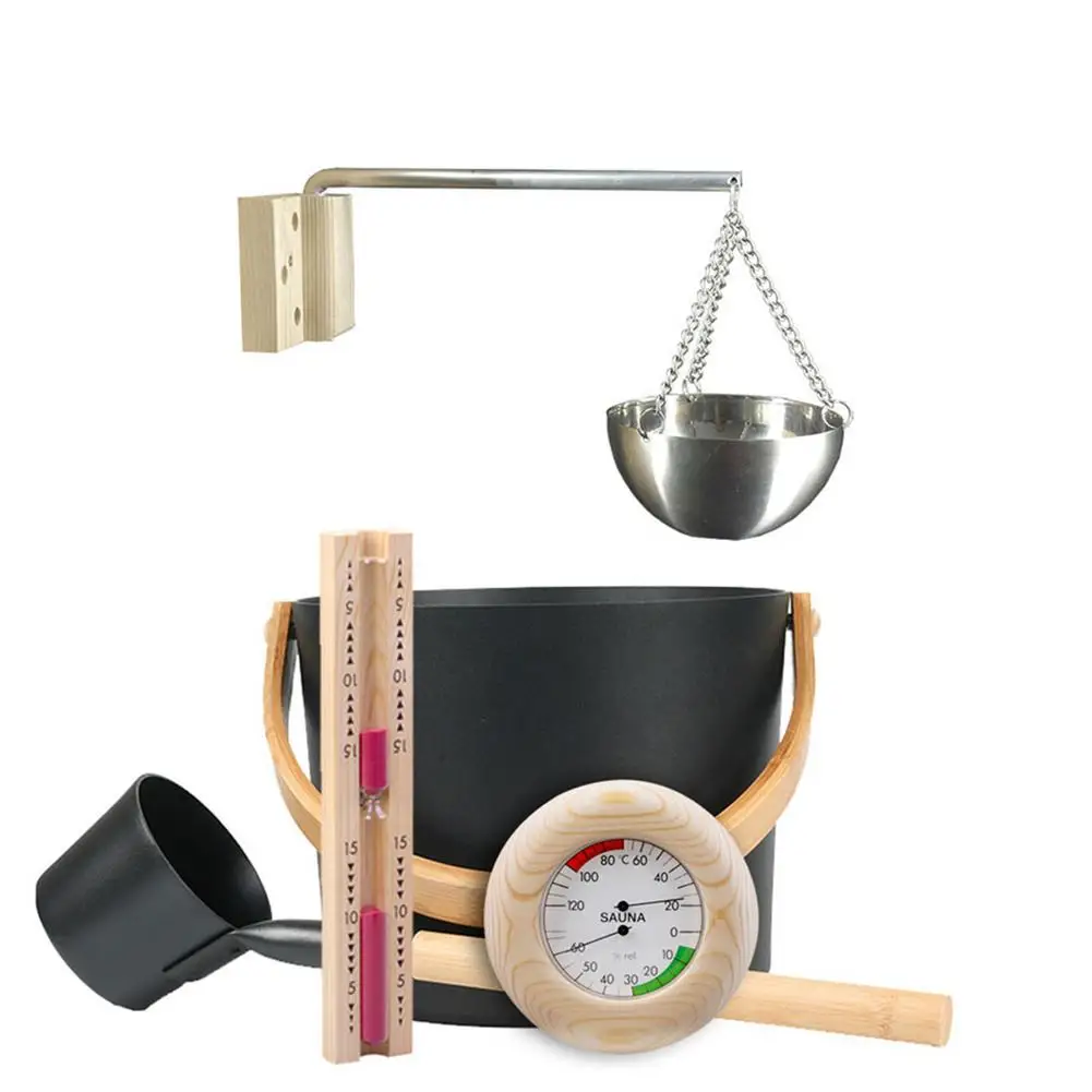 Зимний костюм для сауны 7 л, ведро для сауны + ложка с длинной ручкой + песочные часы, термометргигрометр + чашка для масла для ароматерапии, принадлежности для сауны
