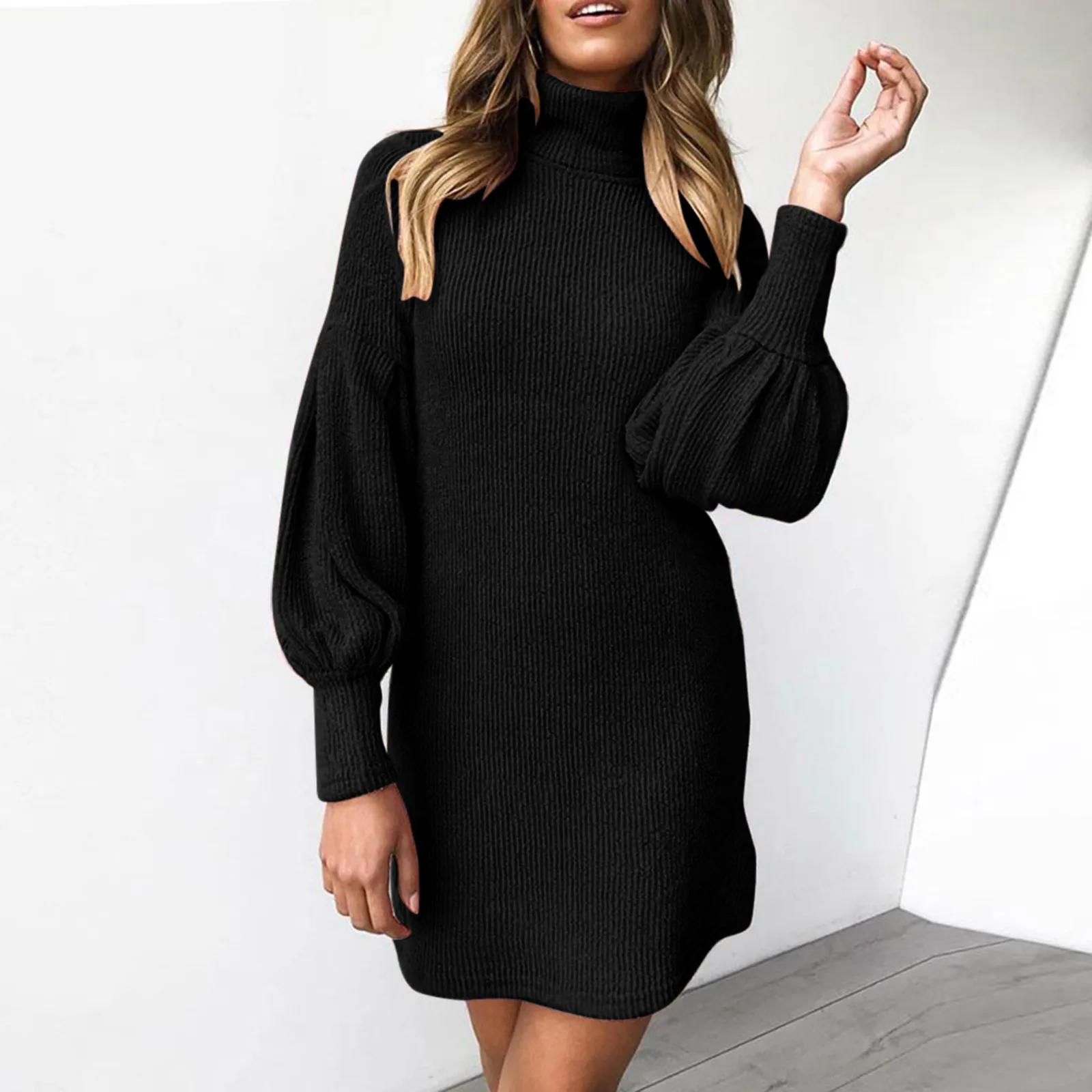 2021 осень-зима вязаное платье женское теплое свободный свитер-водолазка платье женские вечерние платья с длинным рукавом женское черное