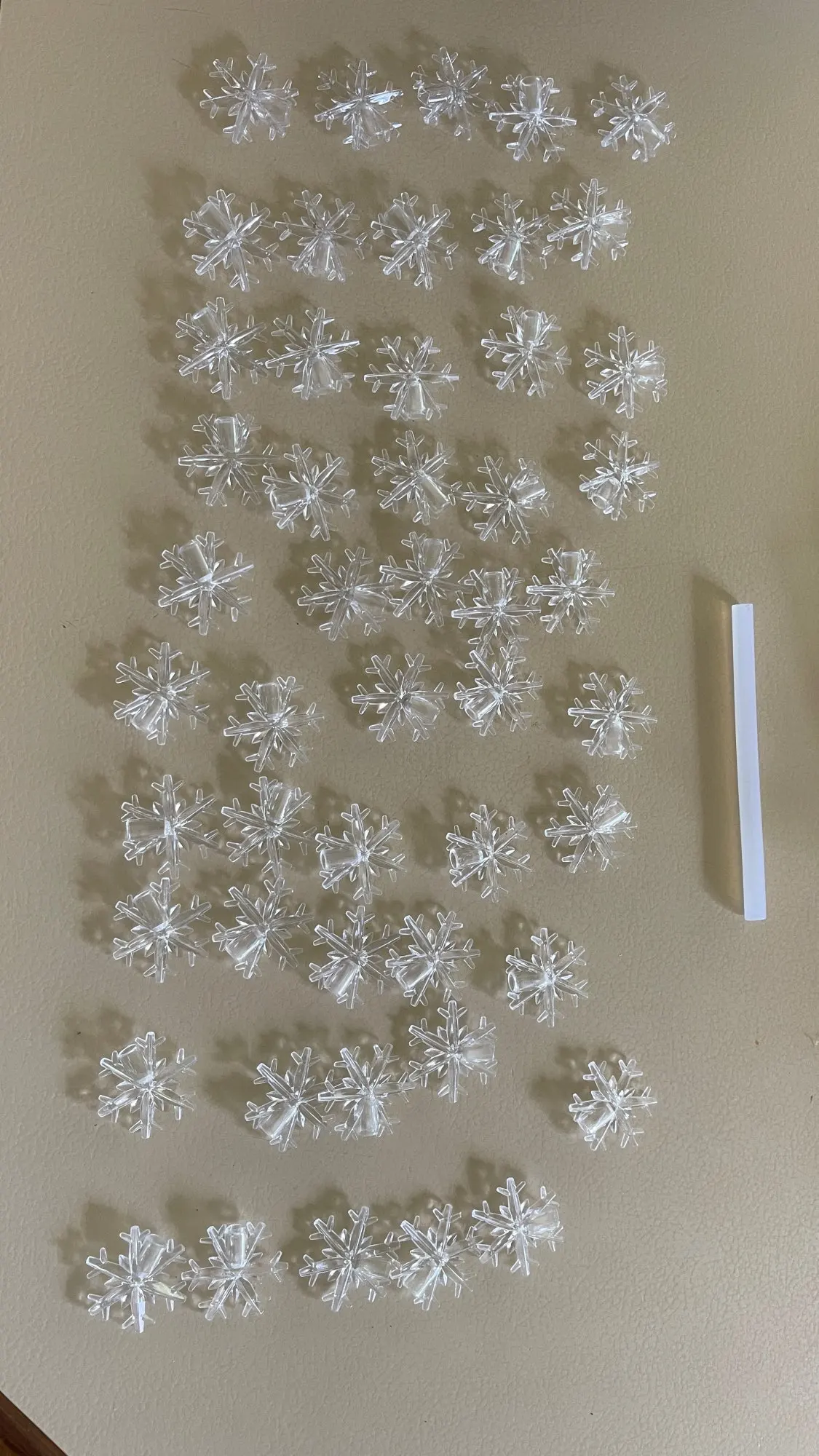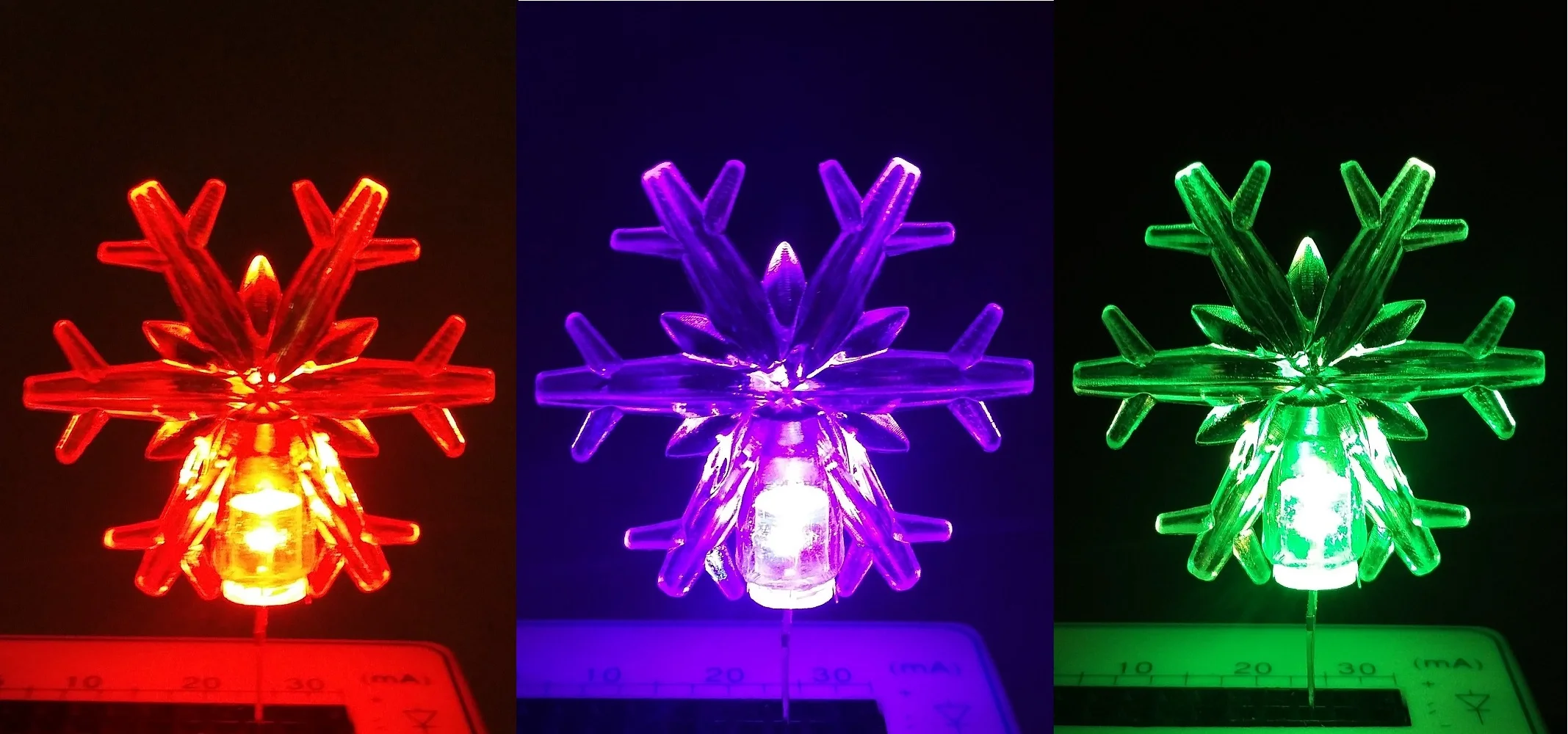 Снежинки 3 см. Доставлены в консолидации до Подмосковья за 20 дней с момента оплаты. Упакованы отлично. Коробка сильно помята, но хрупкий товар в сохранности. Только одного не понял - заказывал один лот, снежинки 3см. - 30 штук, а в реальности пришла коробка "снежинок" 119 штук и стержень термопластичного клея! 119 штук вместо 30 штук - либо ошибка в описании на сайте, либо ошибка продавца. Надеюсь, что продавец не понес убытки. Снежинки как в описании. На некоторых экземплярах у основания есть облой-заусенец, но легко удаляется. Внутренний посадочный диаметр 5,1мм - для диодов до 5 мм. Снежинки легкие, пластик прозрачный. Приобрел для самодельной гирлянды. Продавцу желаю здоровья и процветания его бизнеса!