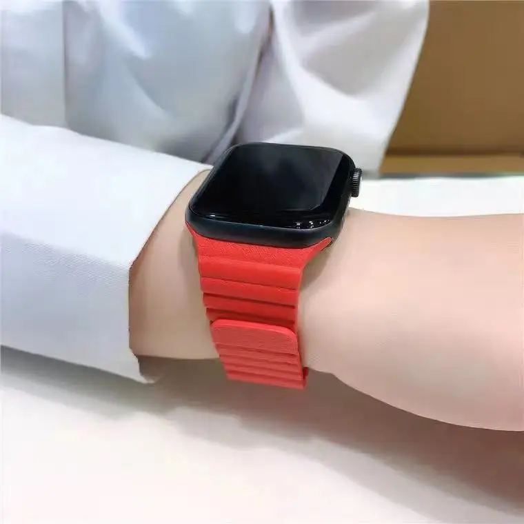 Ремешок магнитный для iWatch 7 6 SE 5 4 3 2 1, кожаный браслет для ...