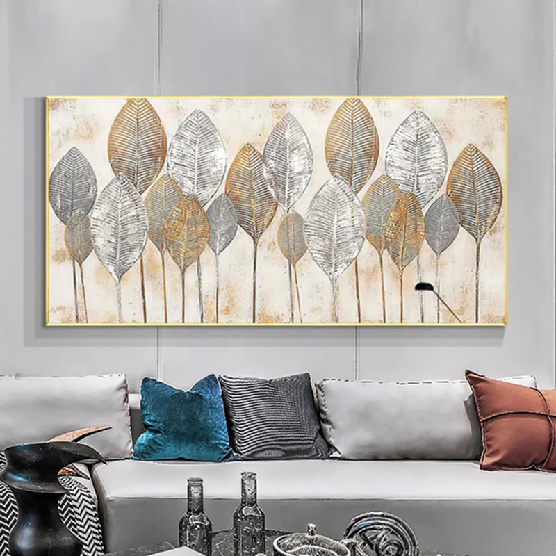 Абстрактная настенная живопись с листьями. Декоративная картина большого размера, напечатанная на холсте для украшения дома гостиной и спальни