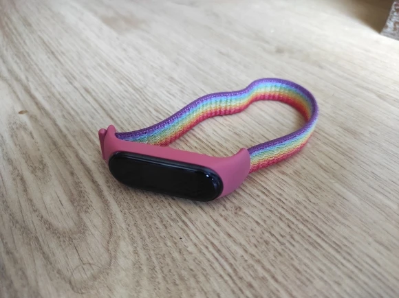 приветики! приехал браслет на ми бенд 4 сидит плотно. цвет светлее чем на фото но все равно красивый. материал как плотная нить. застежка липучка держится хорошо. очень понравился браслет. всем советую товар. продавцу5 балов