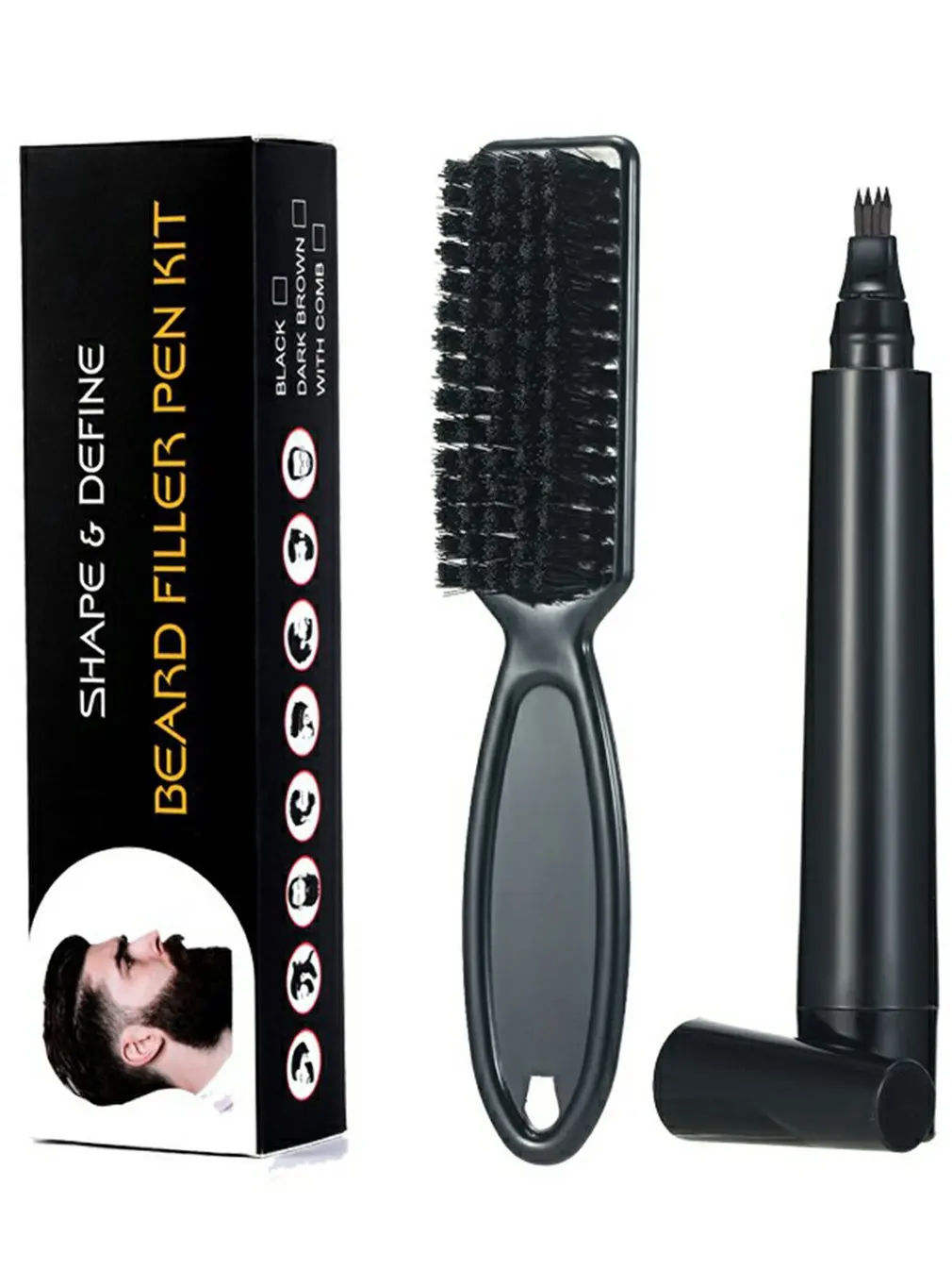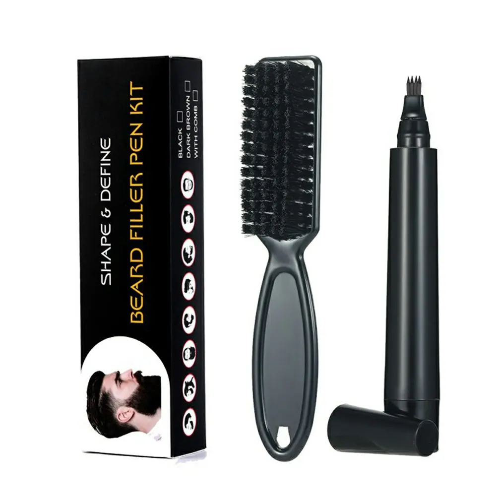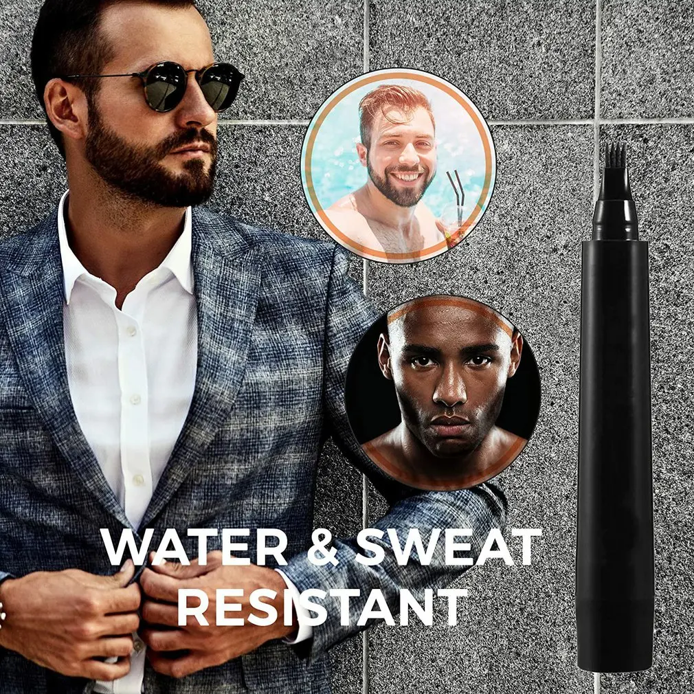 Ручка и кисточка для бороды, портативный фломастер с четырьмя зубцами для бороды, водостойкая, для парикмахера