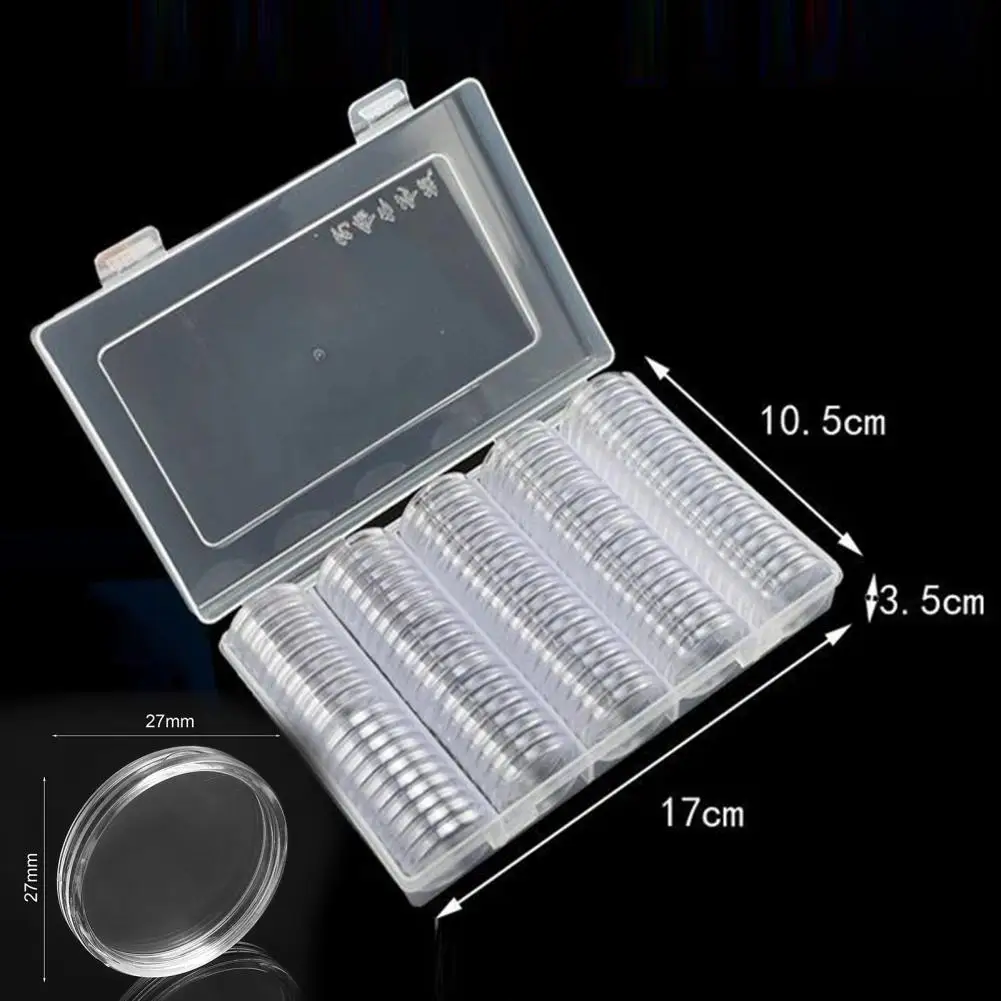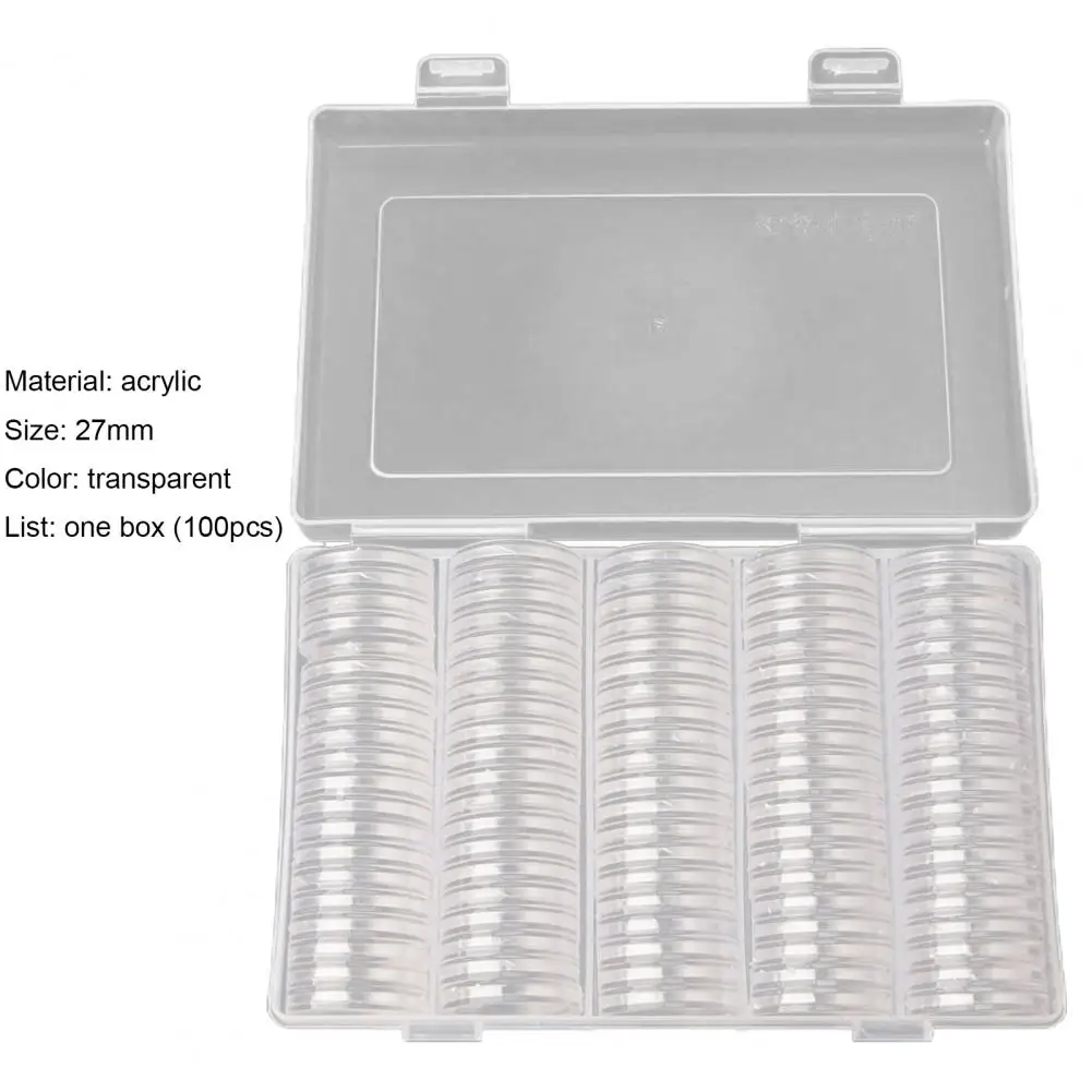 100 шт./компл. 27 мм коллекционные монетницы Защитные Акриловые пыленепроницаемые капсулы для хранения круглые защитные Органайзеры для церемонии награждения Описание: Эта круглая шкатулка для монет обладает износостойкостью, функцией хранения и герметичной конструкцией, позволяет эффективно классифицировать, хранить и защищать монеты в порядке, сохраняя их в чистоте и порядке. Поскольку эта круглая коробка для монет имеет широкое применение, высокую практичность и портативность, ее можно отправить в качестве презентабельного подарка друзьям, которые любят коллекцию монет. Изготовлен из акрила, легкий, многоразовый, прочный и износостойкий. Диаметр каждой коробки для монет составляет 2,7 см. Подходит для коллекции монет, церемоний награждения, рекламных продаж, деловых подарков, выставок и так далее. Название товара: коробочки для монет Материал: акрил Особенности: портативный, простой в хранении, прочный Цвет: прозрачный Размеры: Диаметр монетницы: 2,7 см/1,06 дюйма (прибл.) Примечания: Количество составляет около 100 шт., из-за ручного расчета количество может иметь 1-5 шт. более или менее, надеемся на ваше понимание, спасибо. Из-за разницы в освещении и настройках экрана цвет изделия может немного отличаться от изображения. Возможны незначительные различия в размерах из-за различий в измерениях вручную. Посылка входит: 100 коробок для монет (монета в комплект не входит) 1 х Большой держатель для хранения