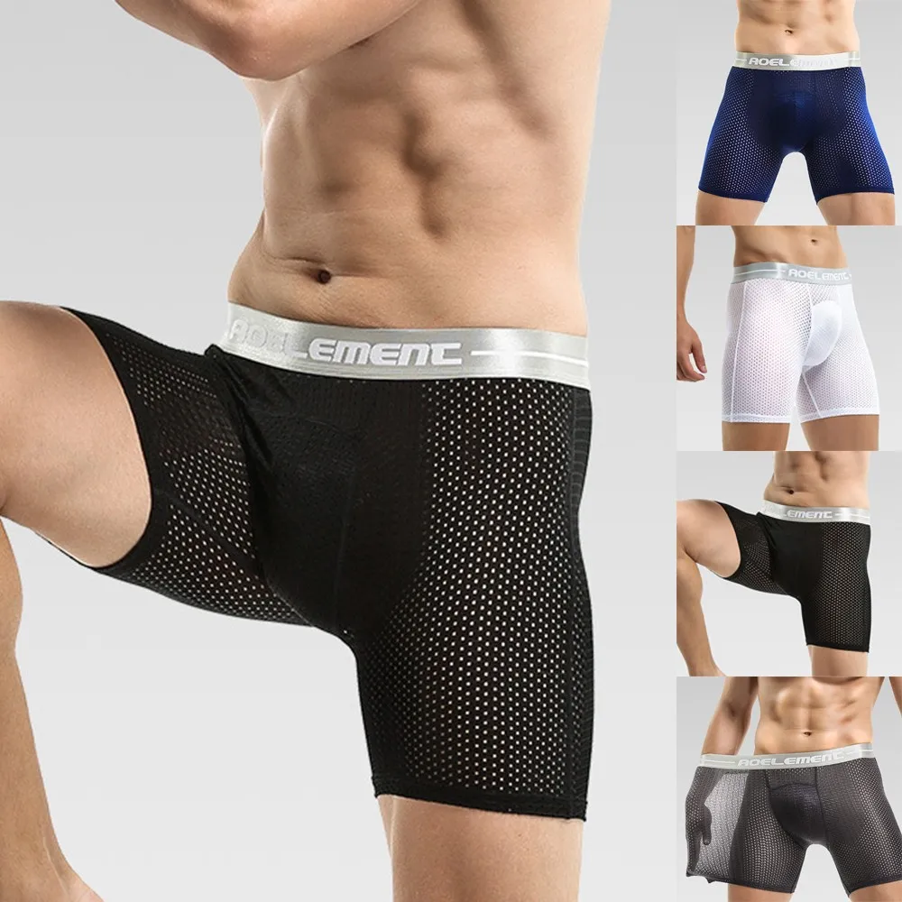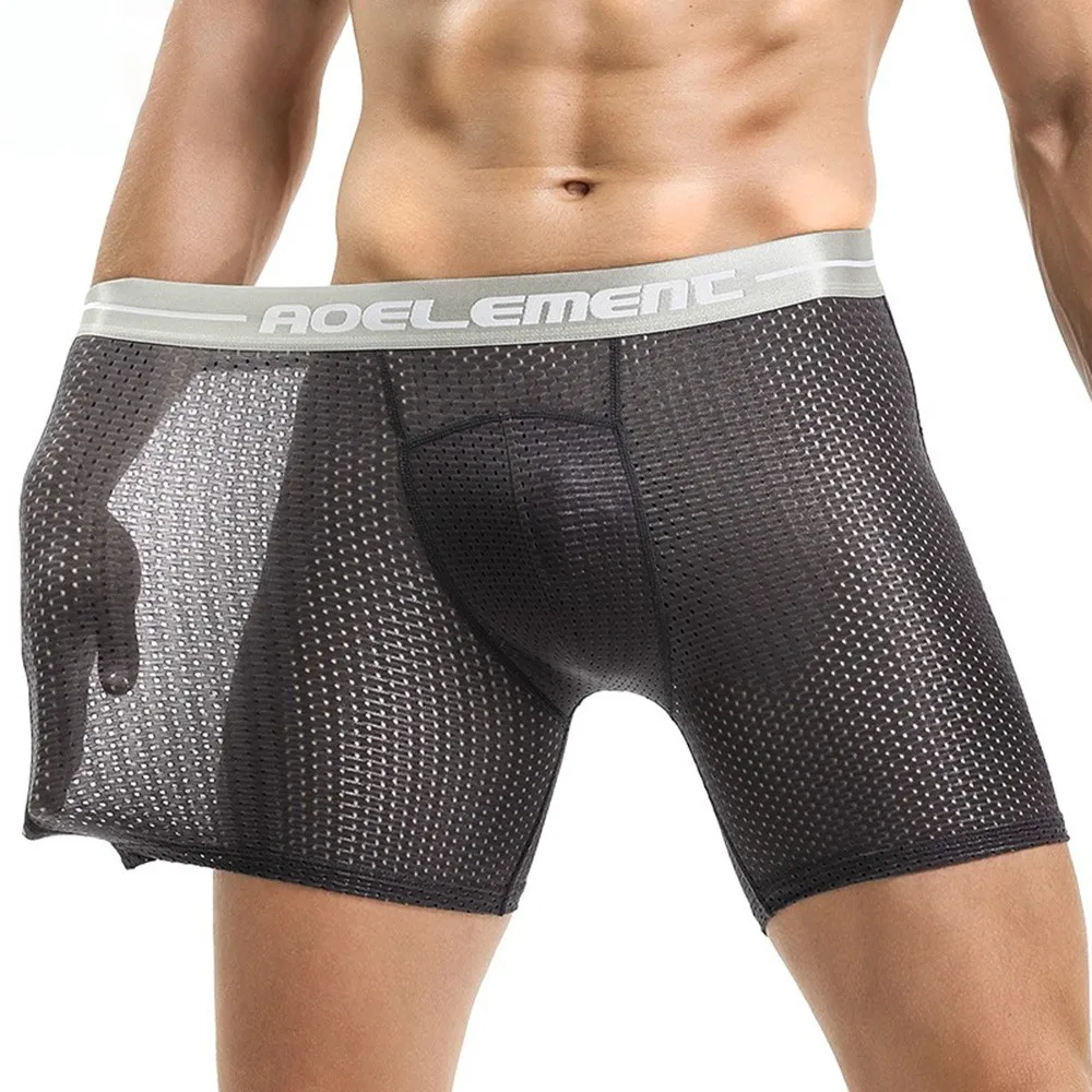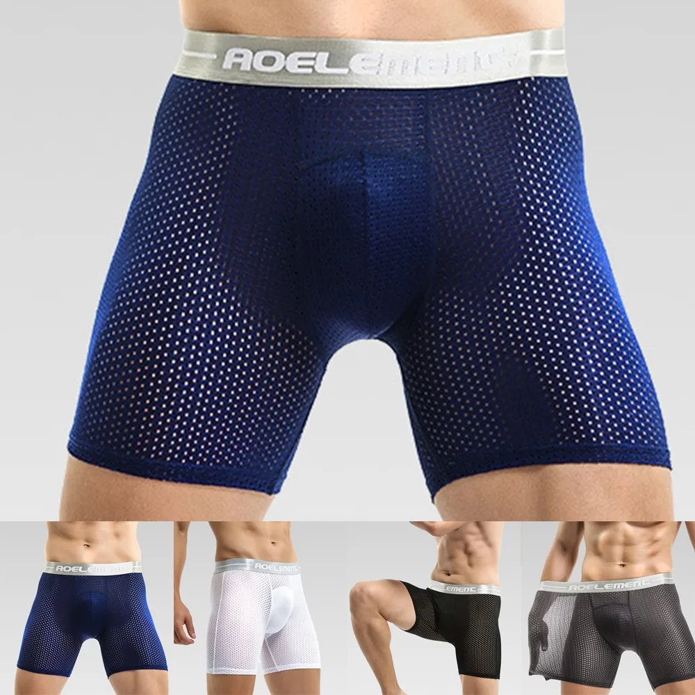 Трусы-боксеры мужские, сексуальные, для фитнеса, сетчатая нейлоновая сумка выпуклых