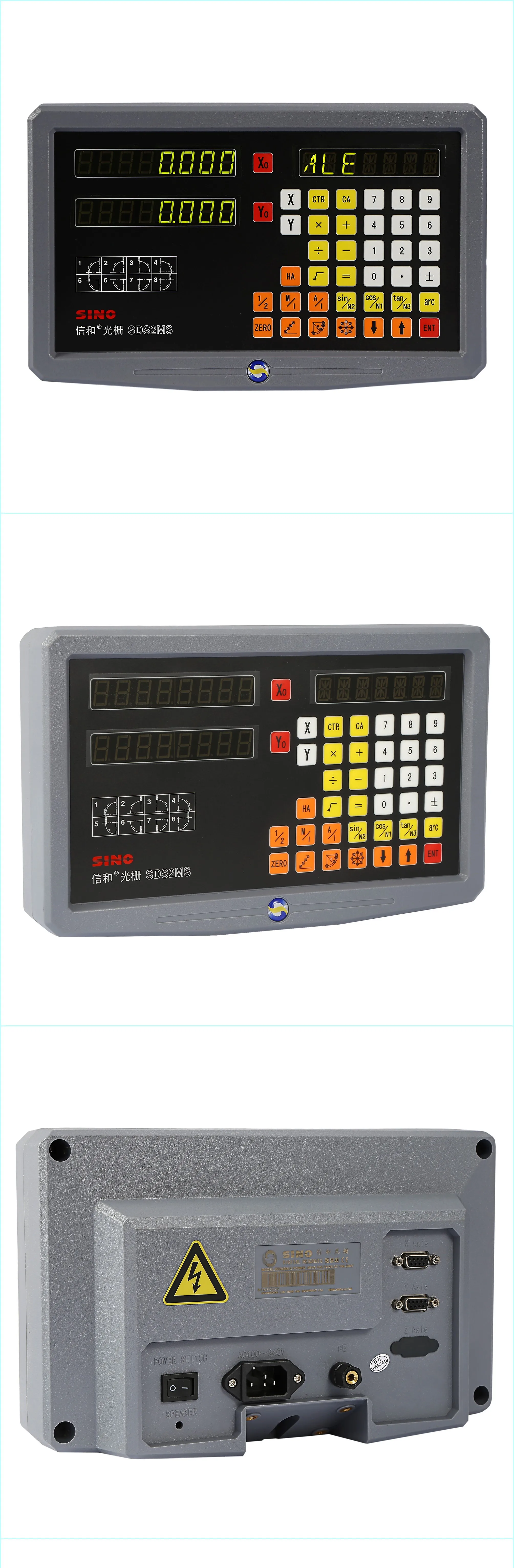 Параметры SDS2MS DRO1. Диапазон напряжения: AC85V ~ 250V / 50 hz ~ 60 hz2. Энергопотребление: 25VA3. Координата номера: координаты, две координаты, три координаты4. Покажите, что подписанные семь дисплеев (две или три оси) выводят данные с помощью восьми метровых слов показывают символы5. Вес: 2 кг6. Входной сигнал: TTL, EIA - 422 открытый коллекторный выходной сигнал, удобный интерфейс с программируемым контроллером.7. Допускается Частота входного сигнала: > 100 кГц8. Для того чтобы соединить Разрешение: 10 мкм, 5 микрон, 2 мкм, 1 мкм, 0,5 мкмПреимущества цифрового дисплея:1, профессиональный дизайн, красивый внешний вид щедрый, подсчитывает Частотный отклик быстрый и мощный.2. Корпус из сплава литья под давлением, обработка поверхности электрическим пенсу, защита от пыли, износостойкость, хорошее экранирование.3, профессиональный дизайн, независимый источник питания, адаптируется к диапазону, высокая стабильность, сильная защита от помех.4. Источник питания и сигнальная защита от помех, высококачественная и прочная Панель кнопок, простая и удобная замена.5, непосредственно на цифровом дисплее для функциональных функций работы, таких как синус, косин, касательная функция, удобная обработка.6, может быть в направлении X и Y для автоматической компенсации инструмента