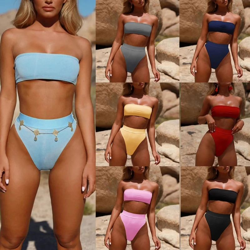Новинка 2021, женский сексуальный комплект бикини, без бретелек, бандо, купальник, сплошной цвет, купальный костюм, biquinis feminino maio praia traje de baño