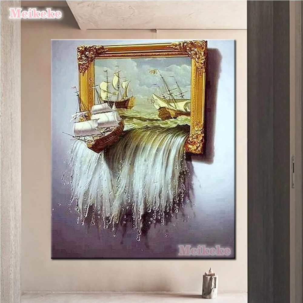 Алмазная 5D Вышивка сделай сам, картина с полными стразами Лодка и Водопад, мозаика для творчества, подарочное украшение для дома