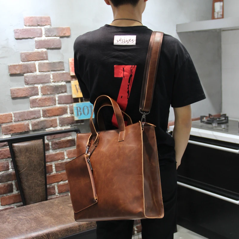 Винтажная Сумка-тоут для мужчин, мессенджер на плечо из искусственной кожи Крейзи Хорс, британская модная сумочка, вместительный мессенджер