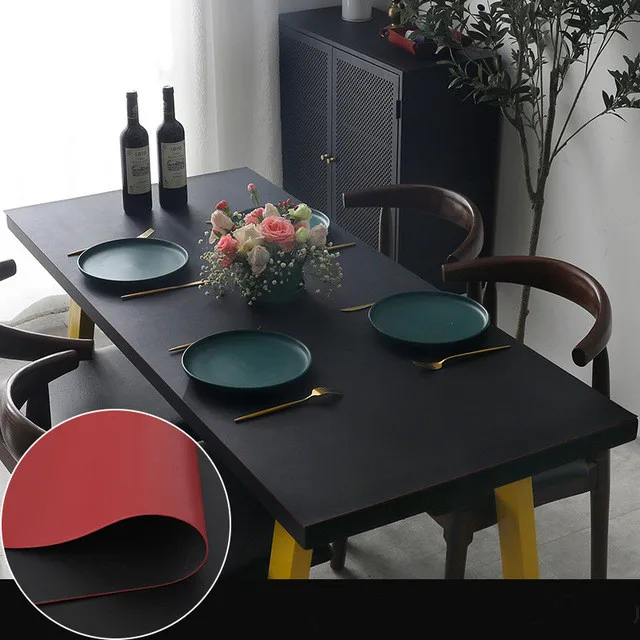 Двусторонняя однотонная кожаная скатерть, водонепроницаемая и масло...