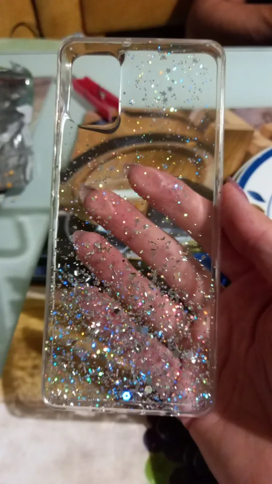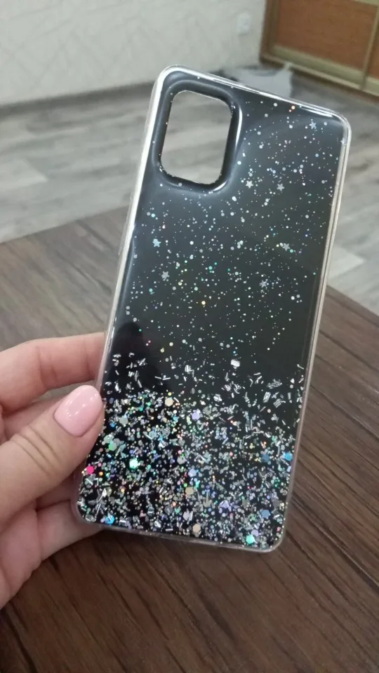 Чехол пришел за 15 дней, с продавцом не общались, заказывала на подарок дня рождения старшей сестре. Я не очень довольна качеством этого красивого чехла на телефон Samsung A31, потому что есть недочёты, такие как потек резины на чехле видно на 2 фото, съехавшая печать на 3 фото, и не доконца нарисован рисунок на 4 фото, и ещё я ожидала что блёстки будут плавать, но они стоят на месте. Если бы челох не был подарком для сестры я бы не была на столько грустная Да это мелочи, но всё-таки хочеться чтобы челох был полностью красив Спасибо продавцу что прислал товар.