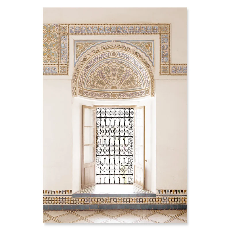 Современный плакат на холсте с изображением цветущей цветочной двери