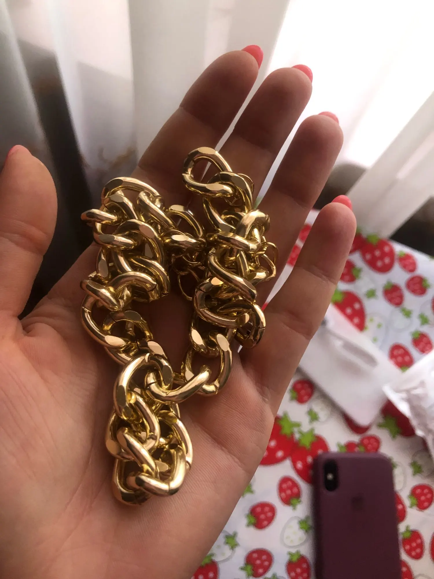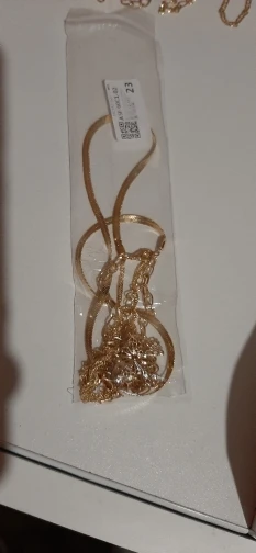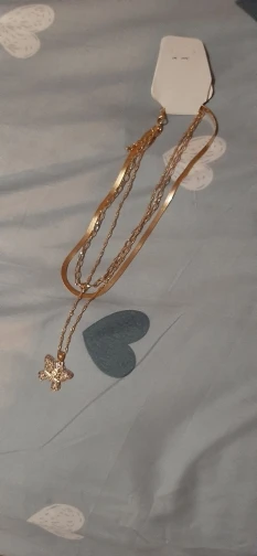 Ожерелье понравилось. Оно состоит из двух отдельных цепочек. Можно носить как вместе так и по отдельности, комбинировать с другими цепочками. Меньшая цепочка больше как чокер, она плотно облегает шею. Длина меньшей - 34 см, большей -50 см.